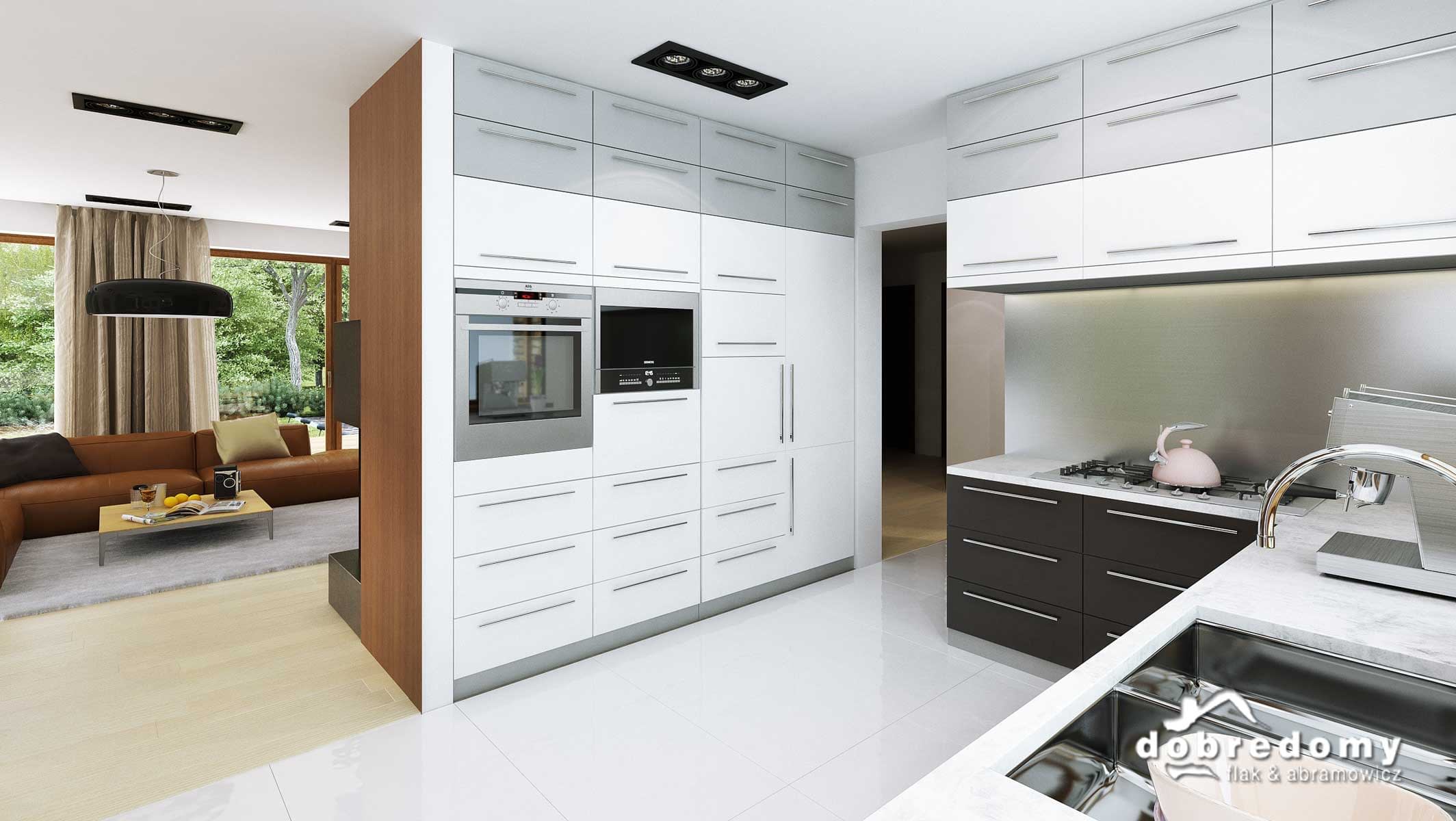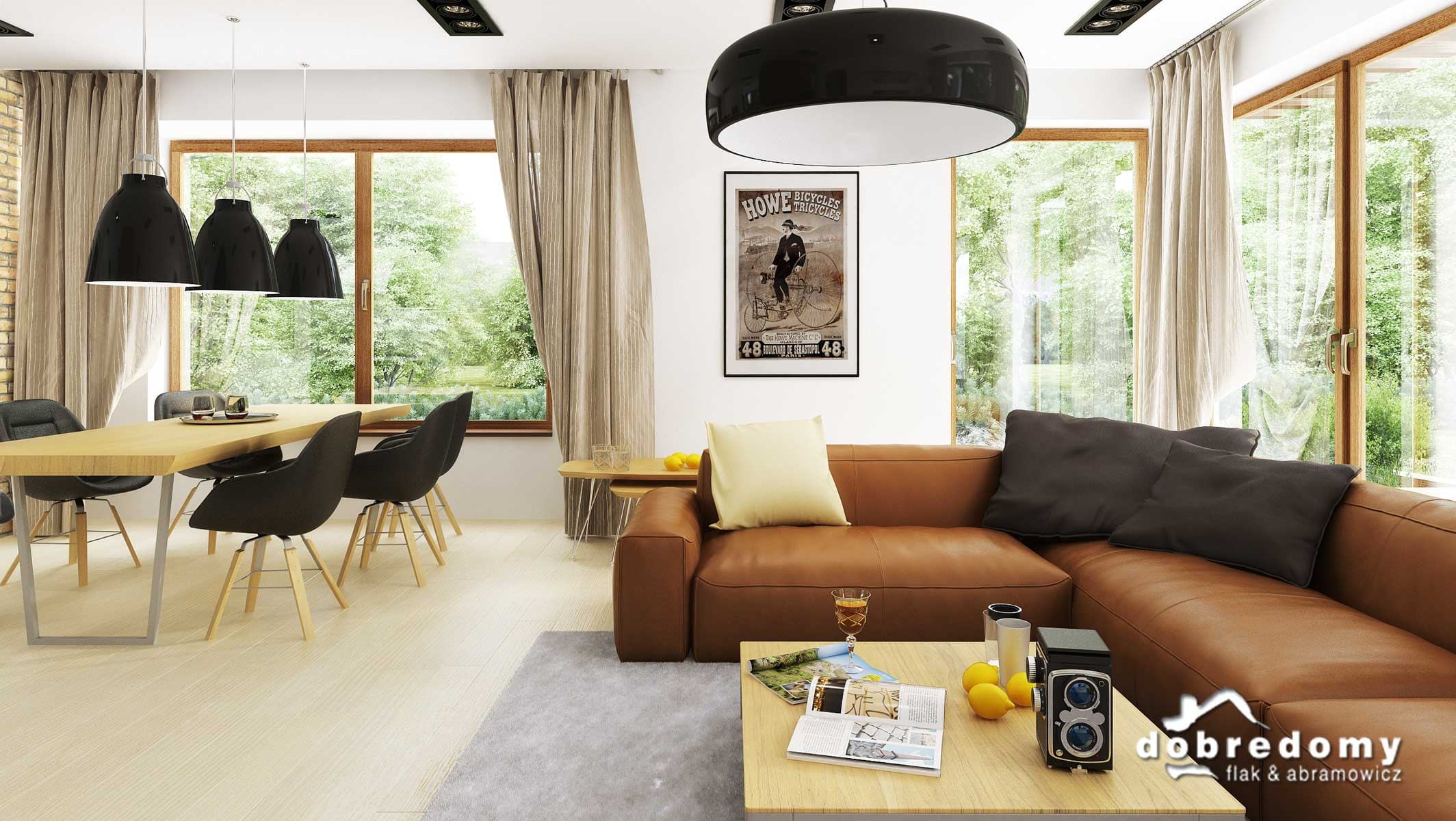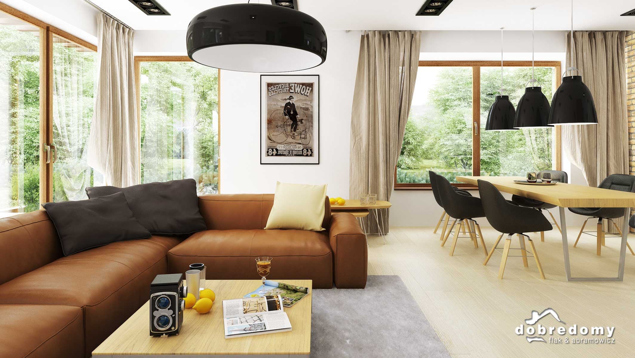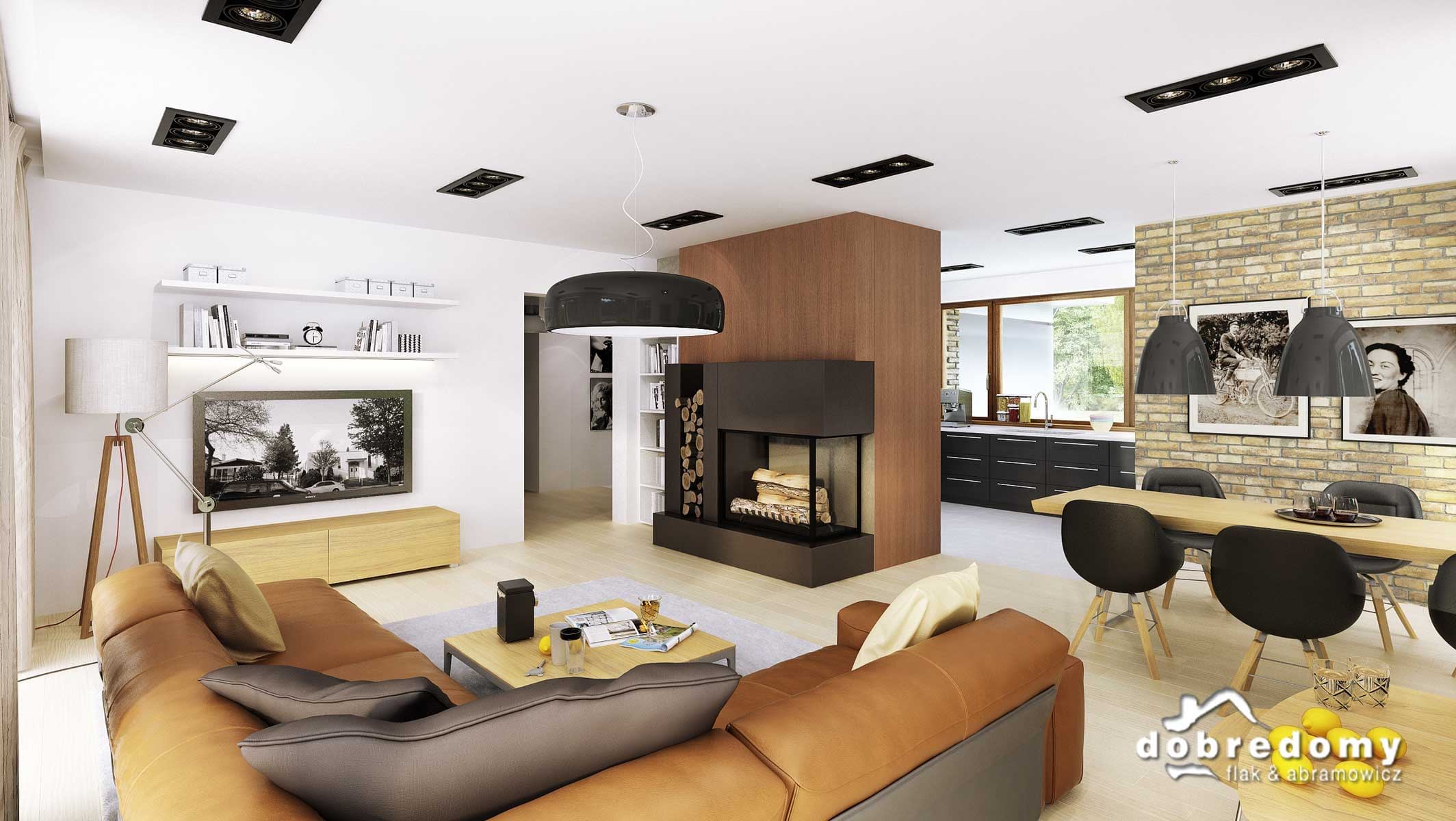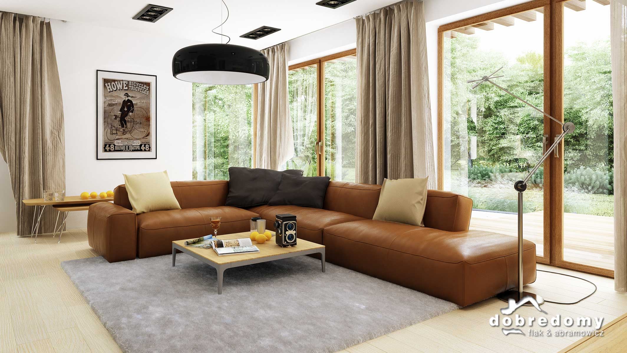 Parterowy dom zaprojektowany dla 4-5 osobowej rodziny. Dom podzielony jest na trzy strefy. Część dzienna to salon z jadalnią, kuchnia z dużą spiżarnią, hall, wiatrołap oraz niewielka łazienka. Część prywatna składa się z trzech sypialni, dużej łazienki oraz korytarza. Część gospodarcza to dwuatnowiskowy garaż oraz pomieszczenie gospodarcze.