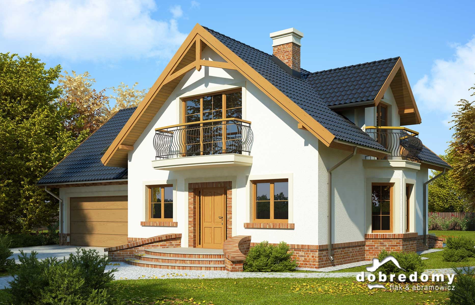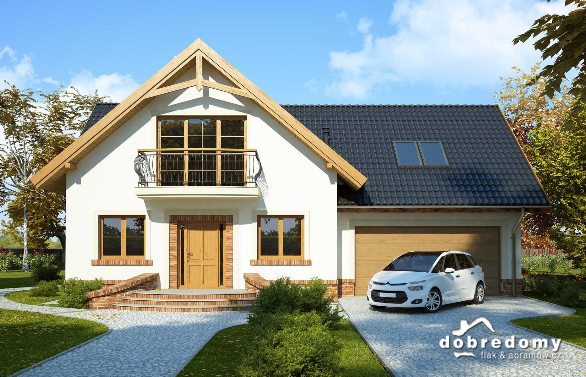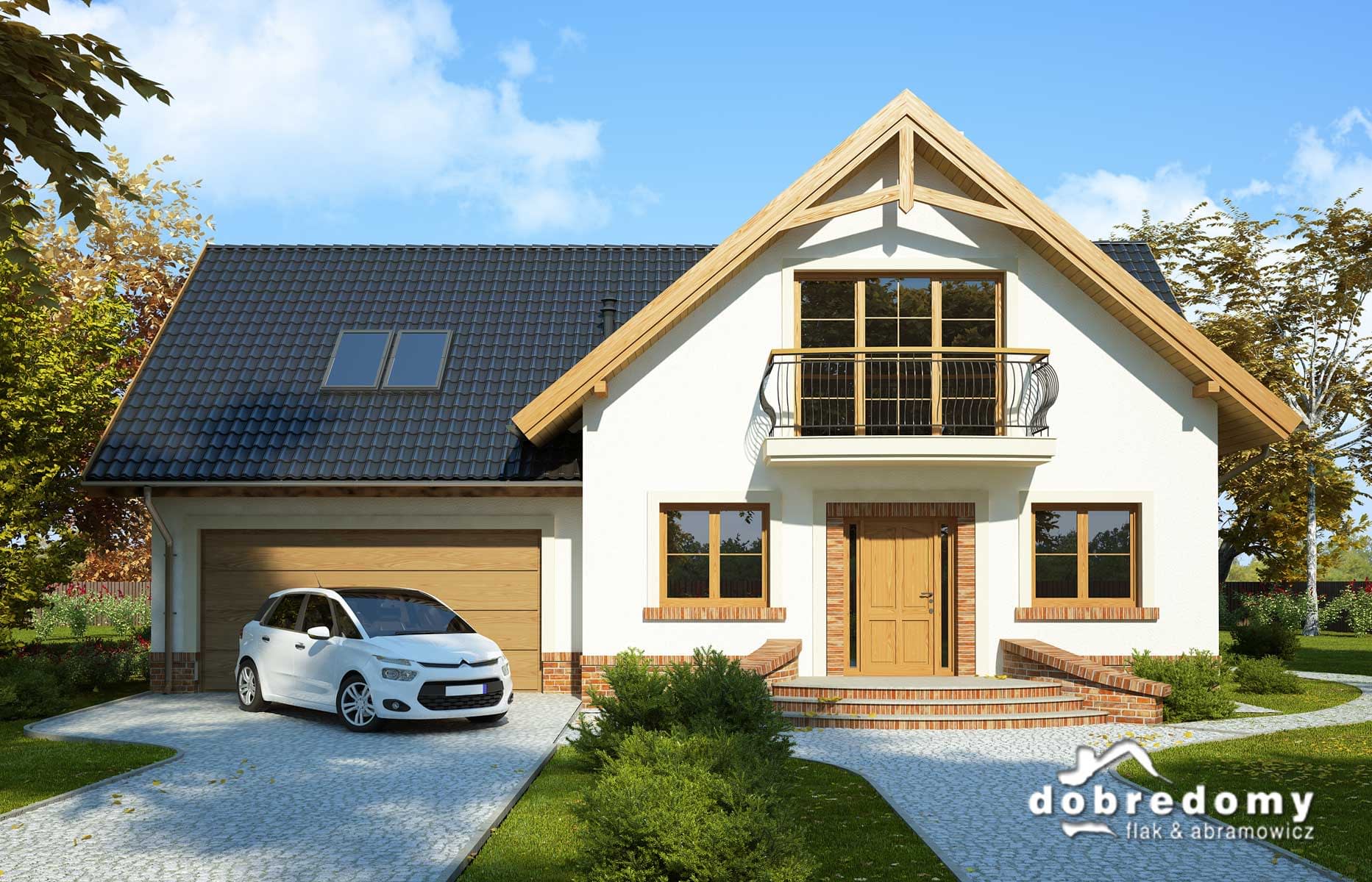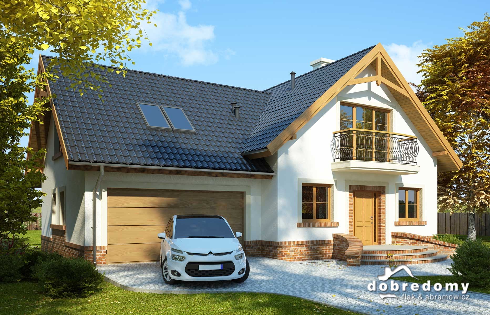 Elewacje pokryte tynkiem strukturalnym w systemie ociepleń Termo Organika oraz okładziną klinkierową. W projekcie zastosowano okna dachowe marki FAKRO. Pokrycie dachu - dachówka ceramiczna lub cementowa CREATON.