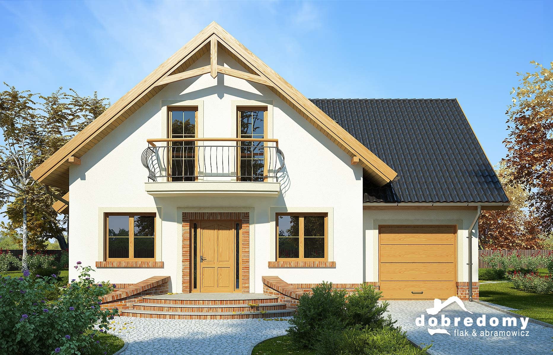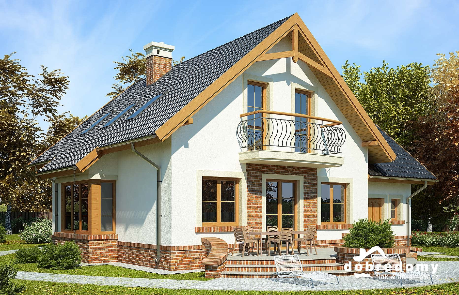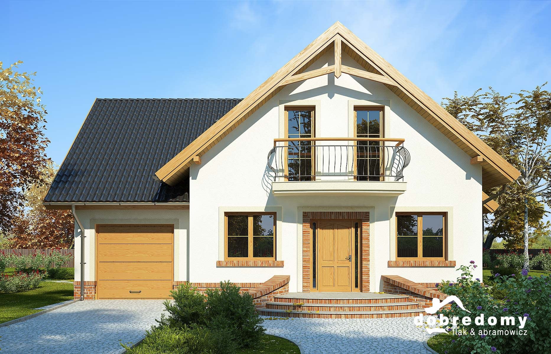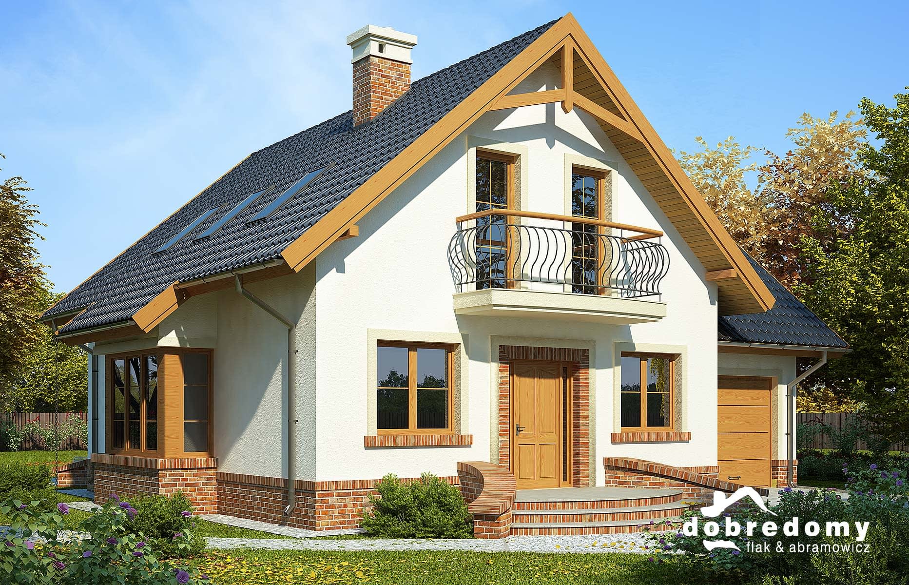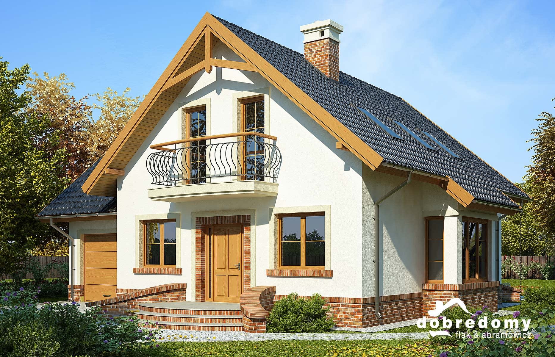 Elewacje pokryte tynkiem strukturalnym w systemie ociepleń Termo Organika oraz okładziną klinkierową. W projekcie zastosowano okna dachowe marki FAKRO. Pokrycie dachu - dachówka ceramiczna lub cementowa CREATON.