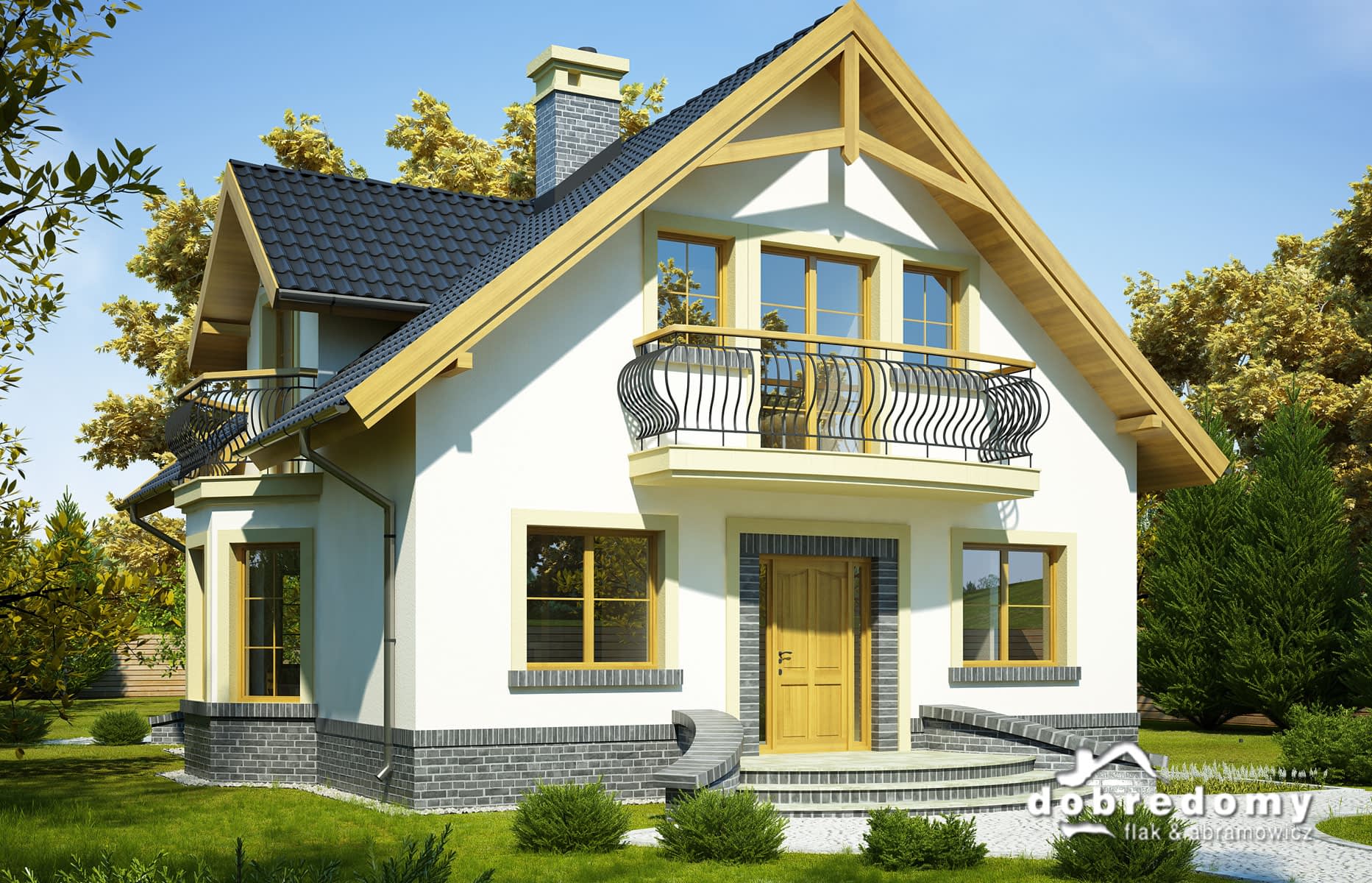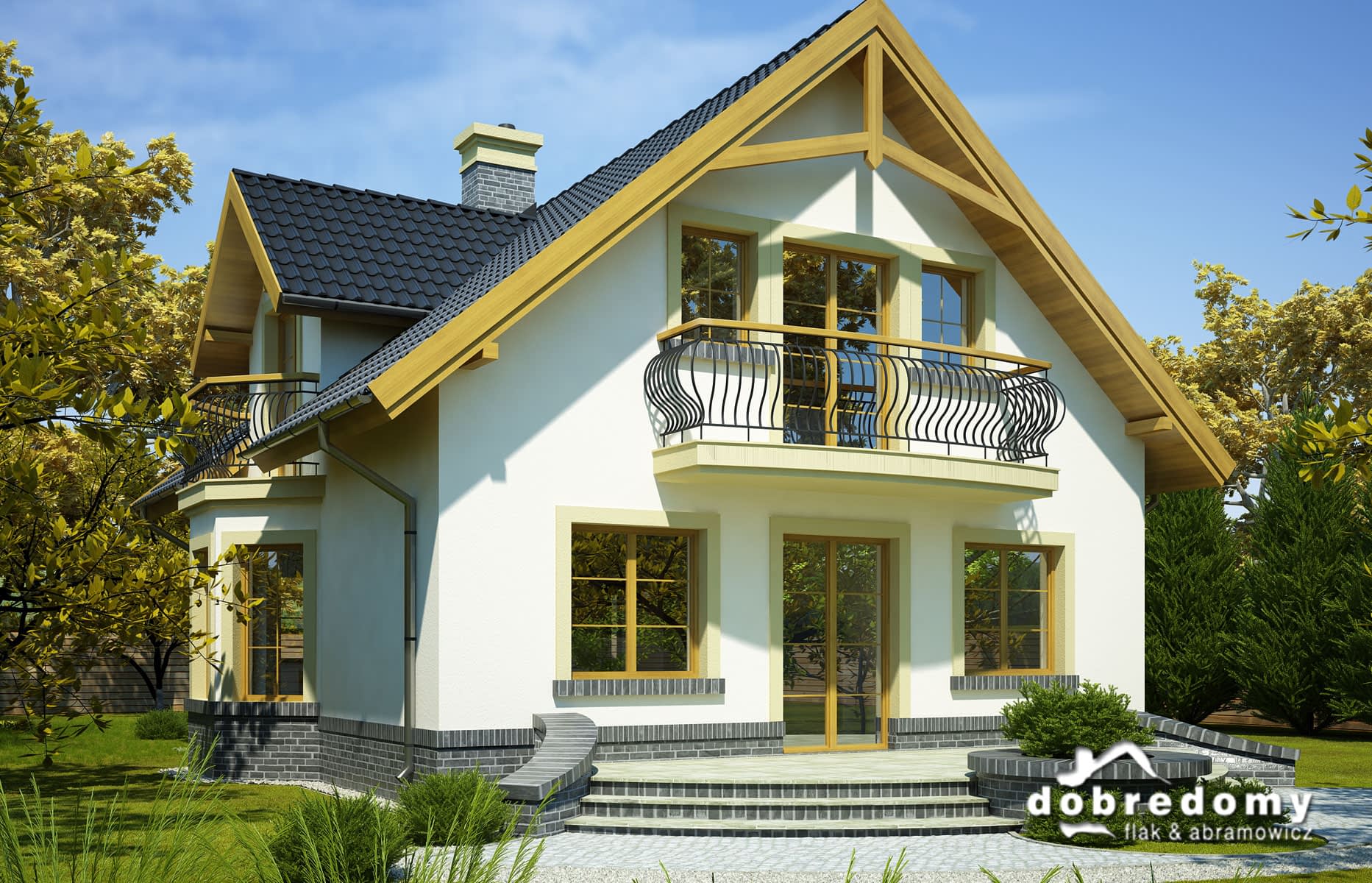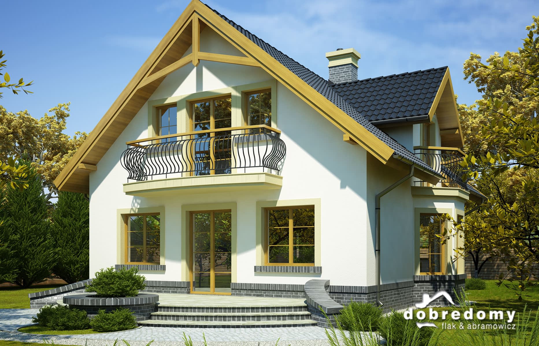 Dom z poddaszem użytkowym, przeznaczony dla 4-6-osobowej rodziny. W części ogólnodostępnej zlokalizowano pokój dzienny połączony z jadalnią i kuchnią oraz pokój gościnny/gabinet. Tuż przy wejściu umieszczono łazienkę oraz pomieszczenie gospodarcze. Na poddaszu znajdują się 3 sypialnie (jedna w własną garderobą) oraz łazienka. Projekt dostępny w wersji z garażem jednostanowiskowym - Juliusz Nowy oraz dwustanowiskowym garażem - Juliusz Nowy II, w wersjach z inną aranżacją poddasza: z garażem jednostanowiskowym - Juliusz, z garażem dwustanowiskowym - Juliusz II oraz bez garażu - Juliusz III, a także w wersji z mniejszą powierzchnią użytkową Juliusz Mały. Projekt może być wykorzystany do zabudowy bliźniaczej.