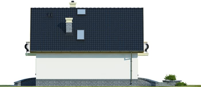 Elewacje pokryte tynkiem strukturalnym w systemie ociepleń Termo Organika oraz okładziną klinkierową. W projekcie zastosowano okna dachowe marki FAKRO. Pokrycie dachu - dachówka ceramiczna lub cementowa CREATON.
