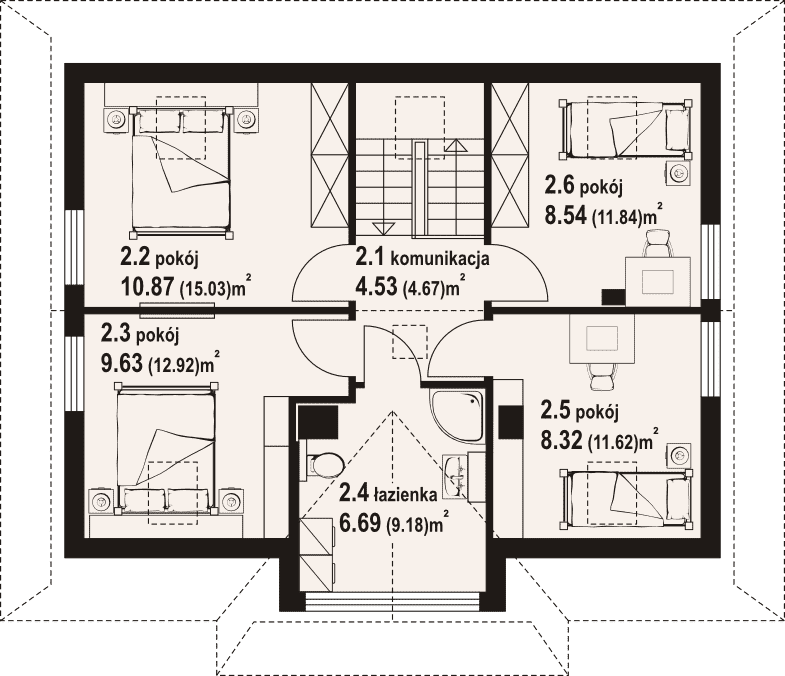 - KondygnacjeParterowy, z poddaszem