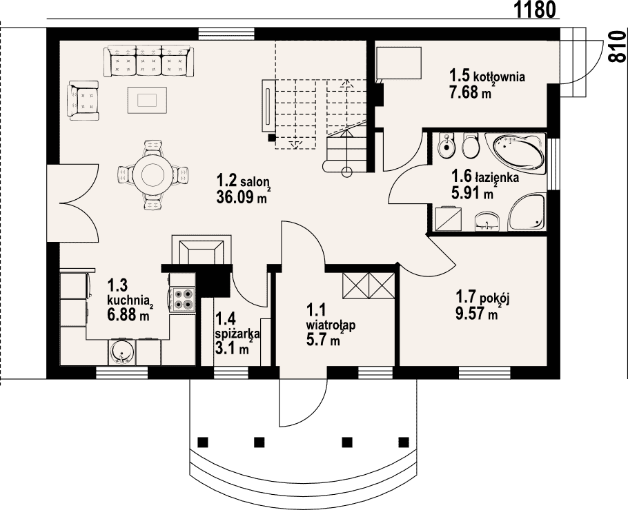 - 1.5 - kotłownia7.68 m²