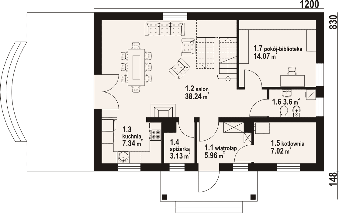 opisu architektonicznego zawierającego m.in. opis przyjętych rozwiązań, zestawienia powierzchni (użytkowej, zabudowy, netto), kubatury oraz powierzchni poszczególnych pomieszczeń.