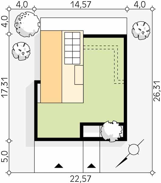 - Minimalne wymiary działki26.31 x 22.57m