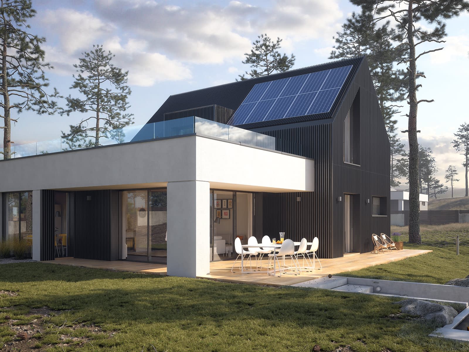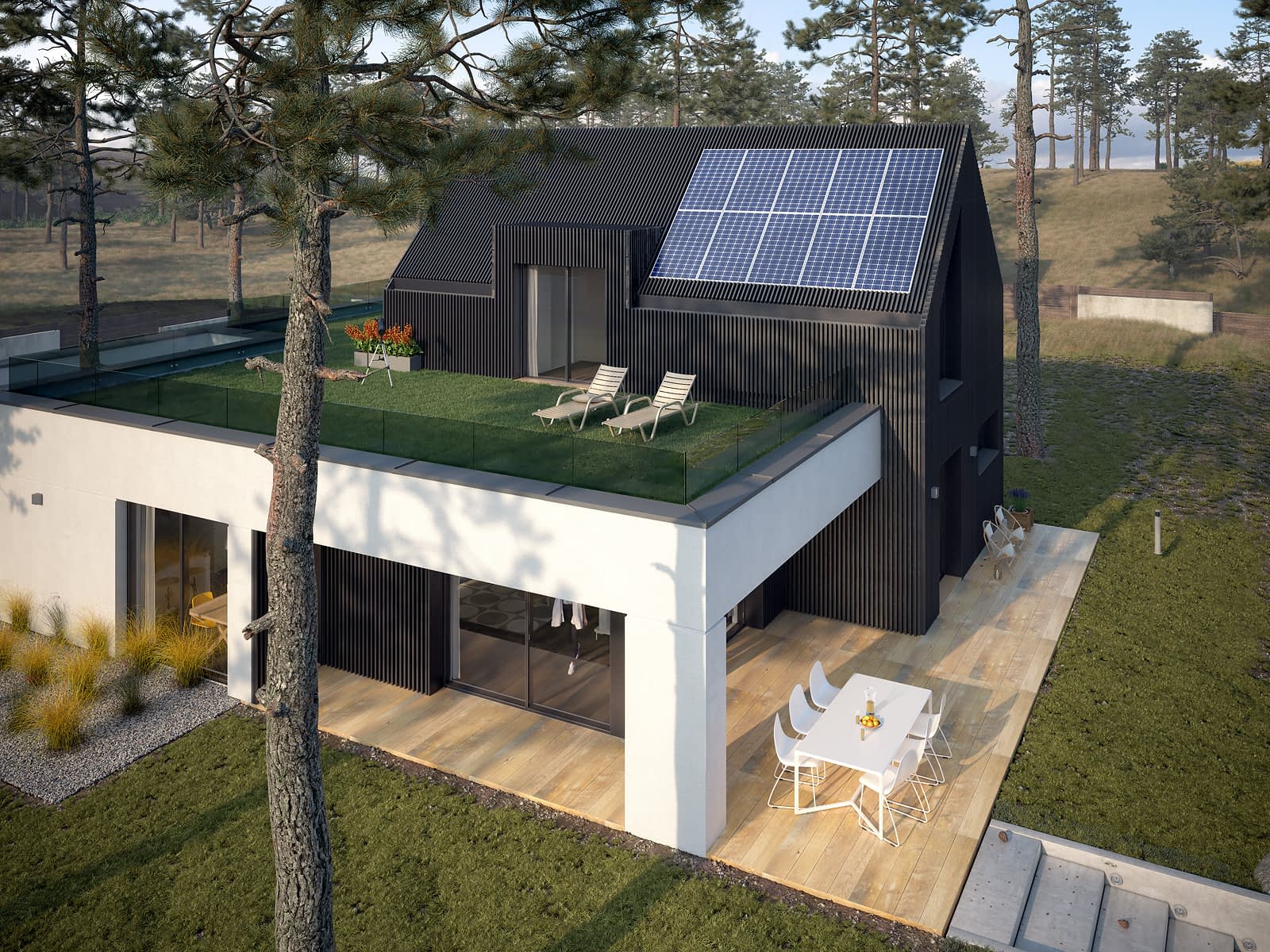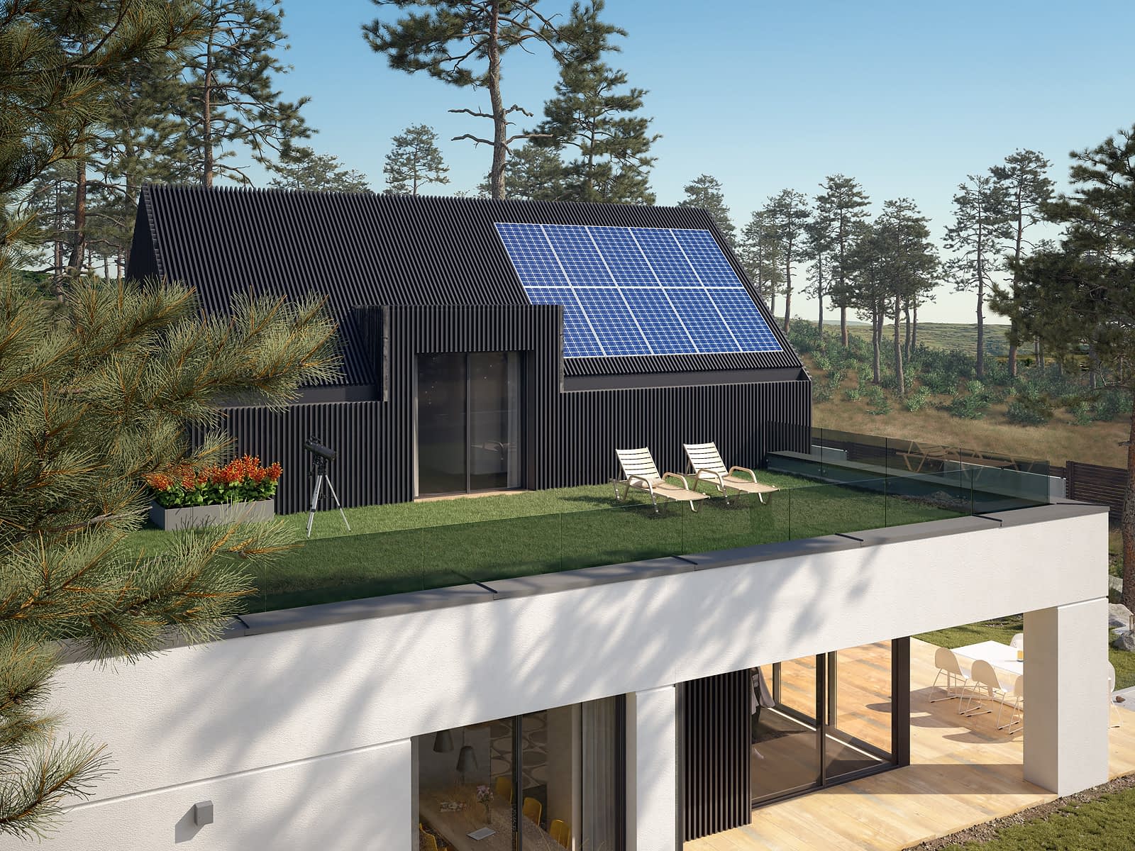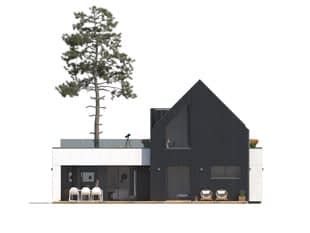 Justa 2 to projekt domu o nowoczesnej formie i funkcjonalnych, przestronnych wnętrzach. Pasjonatom gotowania na pewno spodoba się duża wygodna kuchnia, która dodatkowo posiada spiżarnię. Prawie 30 metrowy salon z dużymi przeszkleniami jest ogromnym atutem tego projektu. Główna sypialnia gospodarzy znajduje się na parterze i ma dostęp do osobistej łazienki oraz garderoby. Dwie pozostałe sypialnie znajdują się na poddaszu, skąd również znajduje się wyjście na pokaźnych rozmiarów taras, który jest idealnym miejscem do wypoczynku i relaksu. Nowoczesny wygląd budynku podkreślają zaprojektowane na elewacji ogrodowej przeszklenia, które wizualnie dodają lekkości i doskonale doświetlają wnętrze domu. Na uwagę zasługuje zielony taras nad kondygnacją parteru oraz dwuspadowa bryła poddasza wykończona drewnianą szalówką.Konstrukcja