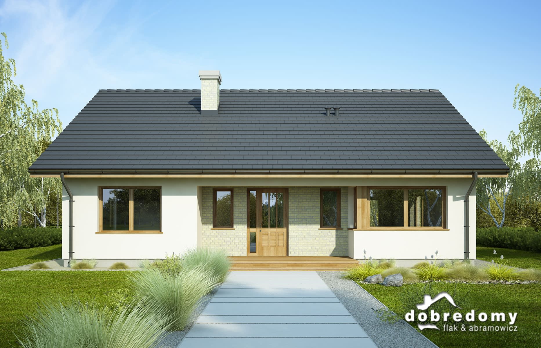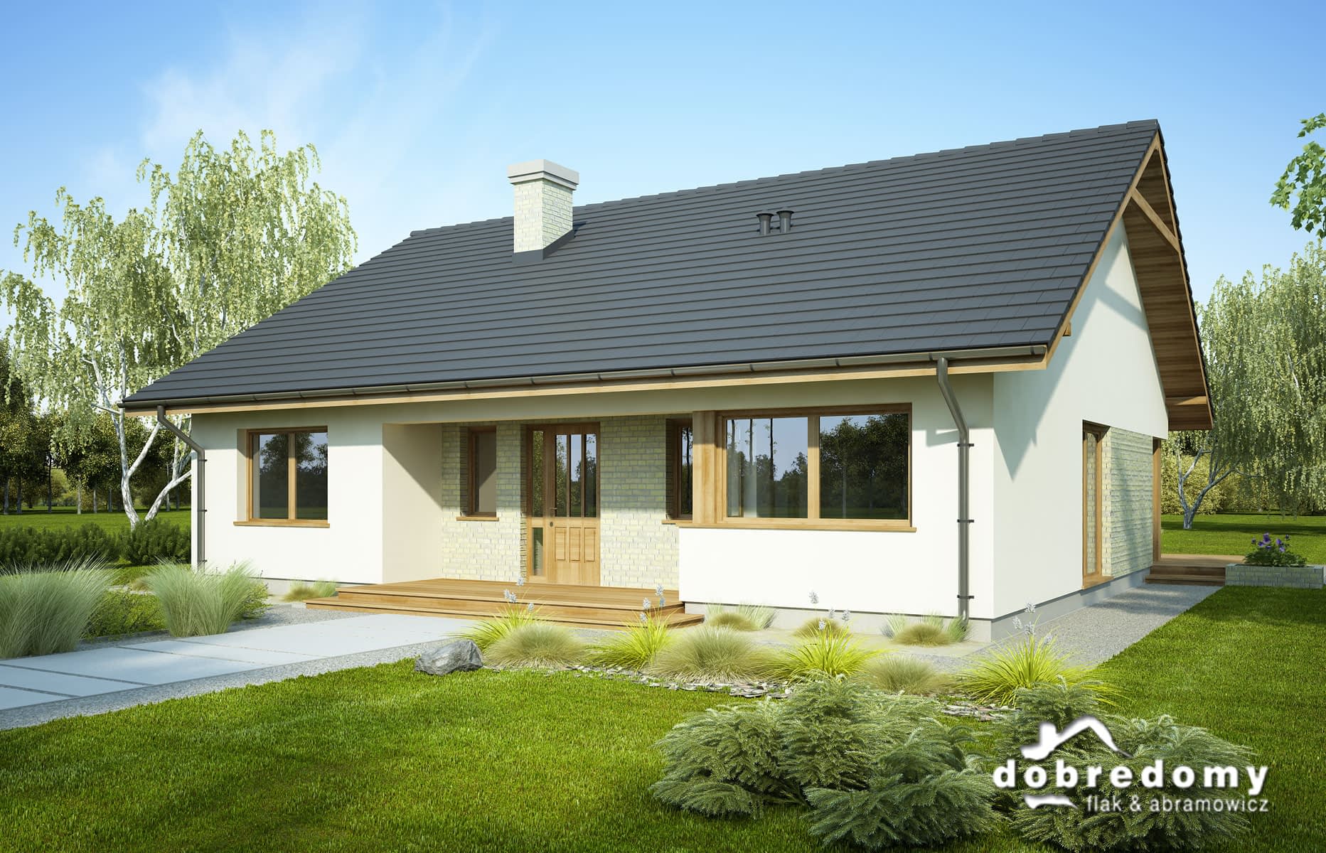 Projekt nowoczesnego, parterowego domu z poddaszem nieużytkowym, które można w późniejszym czasie przystosować do zamieszkania. Część dzienna obejmuje pokój dzienny, jadalnię, kuchnię ze spiżarnią oraz wc. Tuż przy wiatrołapie zaprojektowano pom. gosp. Strefa nocna domu to trzy sypialnie, łazienka oraz garderoba. Projekt dostępny w wersji z garażem jednostanowiskowym - Justynian II.