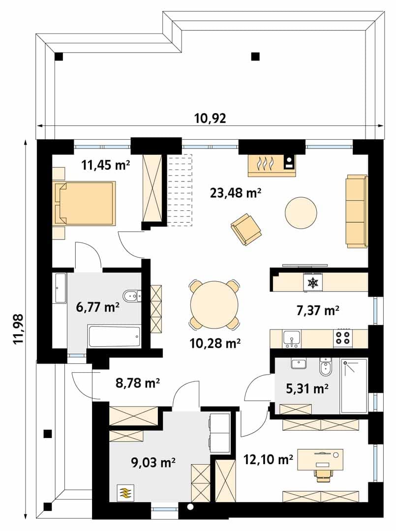 - Szerokość domu10.92 m