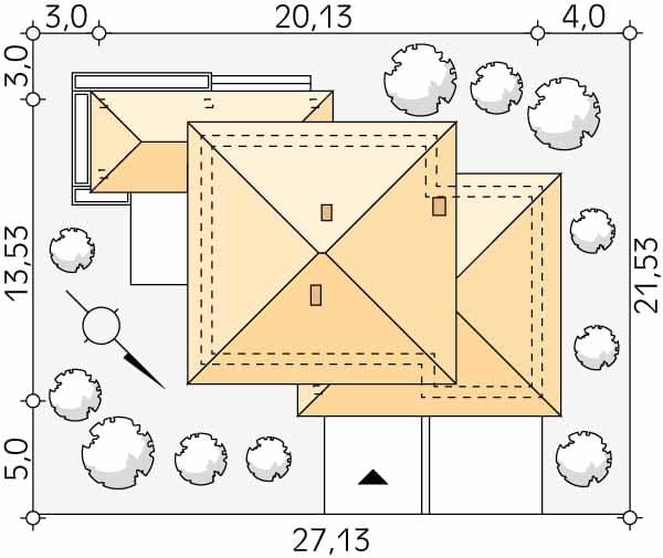 - Minimalne wymiary działki21.53 x 27.13m