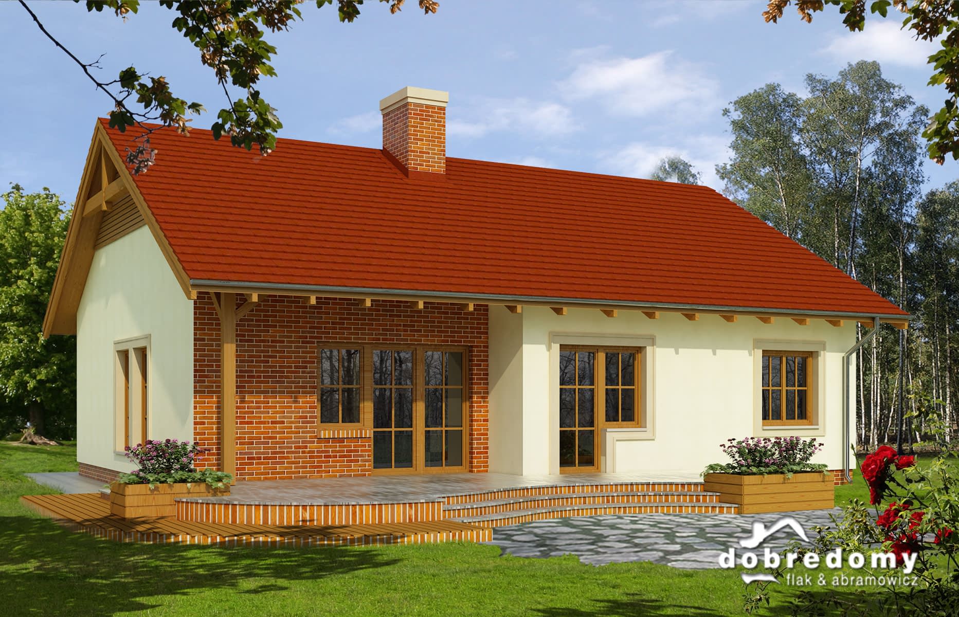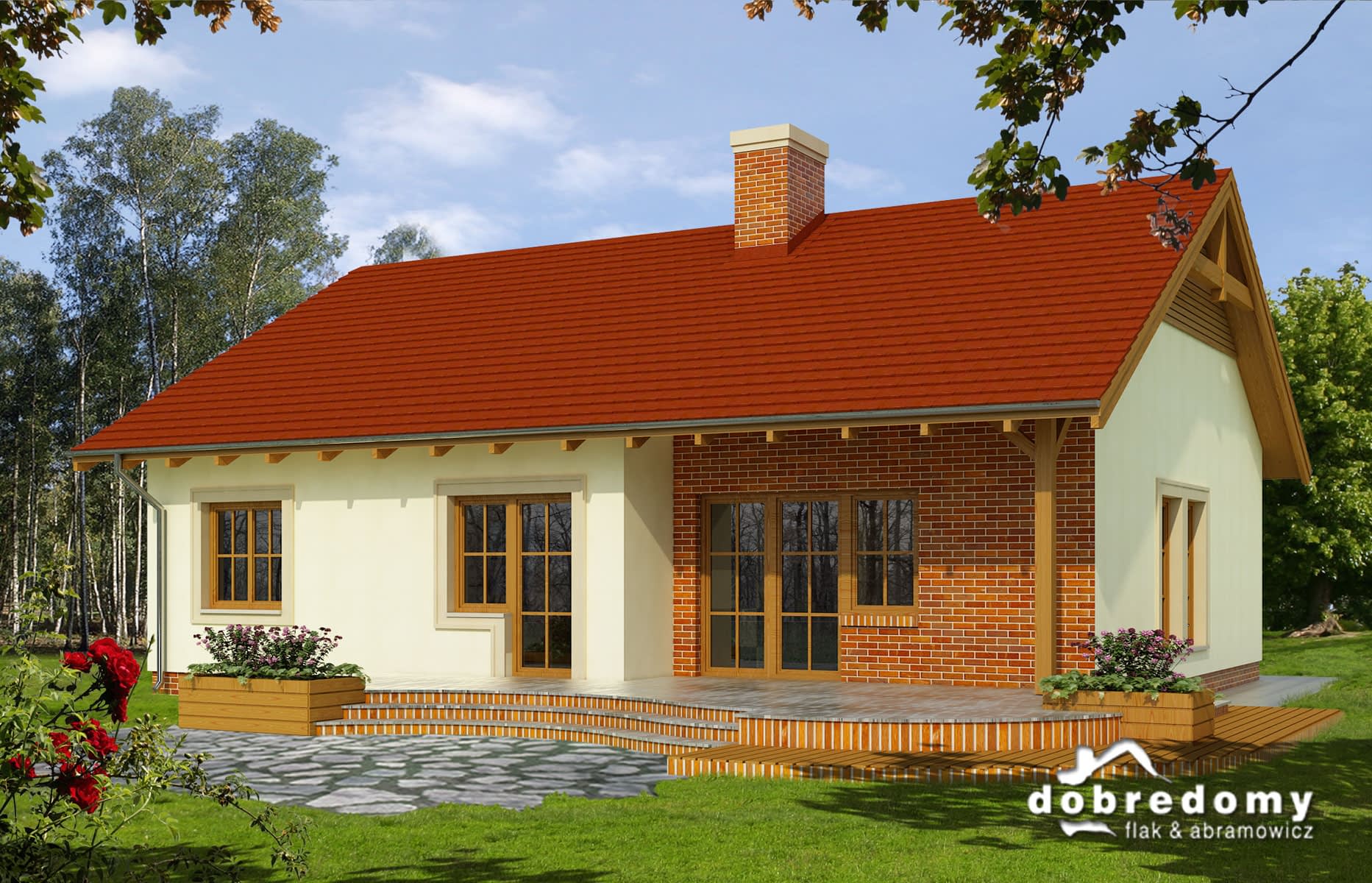 Elewacje pokryte tynkiem strukturalnym w systemie ociepleń Termo Organika, okładziną drewnianą oraz klinkierową. Pokrycie dachu - dachówka ceramiczna lub cementowa.