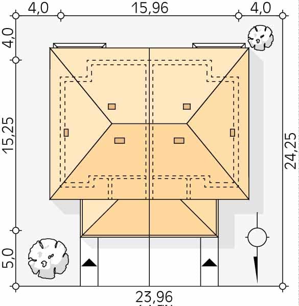 - Minimalne wymiary działki24.25 x 23.96m