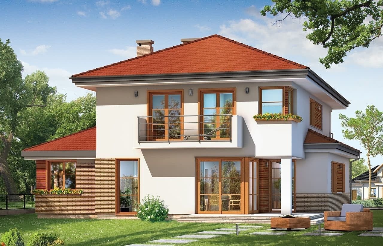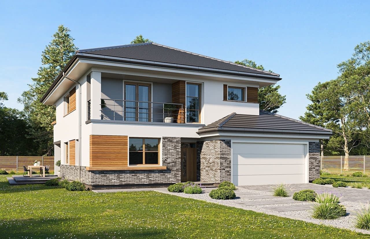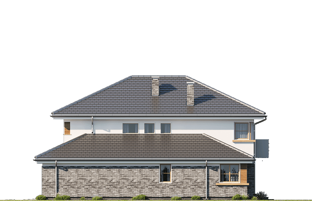 Projekt domu Kasjopea 3 to przeznaczony dla rodziny cztero-sześcioosobowej dom jednorodzinny. Piętrowy budynek przykryty wielospadowym dachem. Zwarta, prosta w budowie bryła budynku z dobudowanym garażem została urozmaicona okładziną klinkierową elewacji, oraz podcieniami - wejściowym i ogrodowym. W Kasjopea 3 położyliśmy szczególny nacisk na czystość i prostotę formy budynku. Oszczędny detal dodaje bryle dyskretnej elegancji. Wnętrze również zaplanowano tak, aby podziały pomieszczeń były klarowne - bez zbędnych korytarzy, a same pokoje były przestronne i miały optymalny kształt. Na parterze zaprojektowano salon z jadalnią i holem, z częściowo otwartą kuchnią, oraz dodatkowy pokój - gabinet lub sypialnię gościnną. Na piętrze umieszczono trzy sypialnie z garderobami i szafami wbudowanymi, oraz dużą łazienkę. Istnieje możliwość wygospodarowania dodatkowego czwartego pokoju na piętrze - likwidując garderobę. Pracownia posiada wersję odbicia lustrzanego projektu Kasjopea 3 oraz kilka wersji: podstawowa (projekt domu Kasjopea) i jej wersja odświeżona (projekt domu Kasjopea 8), bliźniak (projekt domu Kasjopea 2), pomniejszona (projekt domu Kasjopea 4), komfortowa (projekt domu Kasjopea 5), największa (projekt domu Kasjopea 6), z nowocześniejszą architekturą (projekt domu Kasjopea 7) oraz z wyższym kątem nachylenia dachu (projekt domu Kasjopea 7 B).