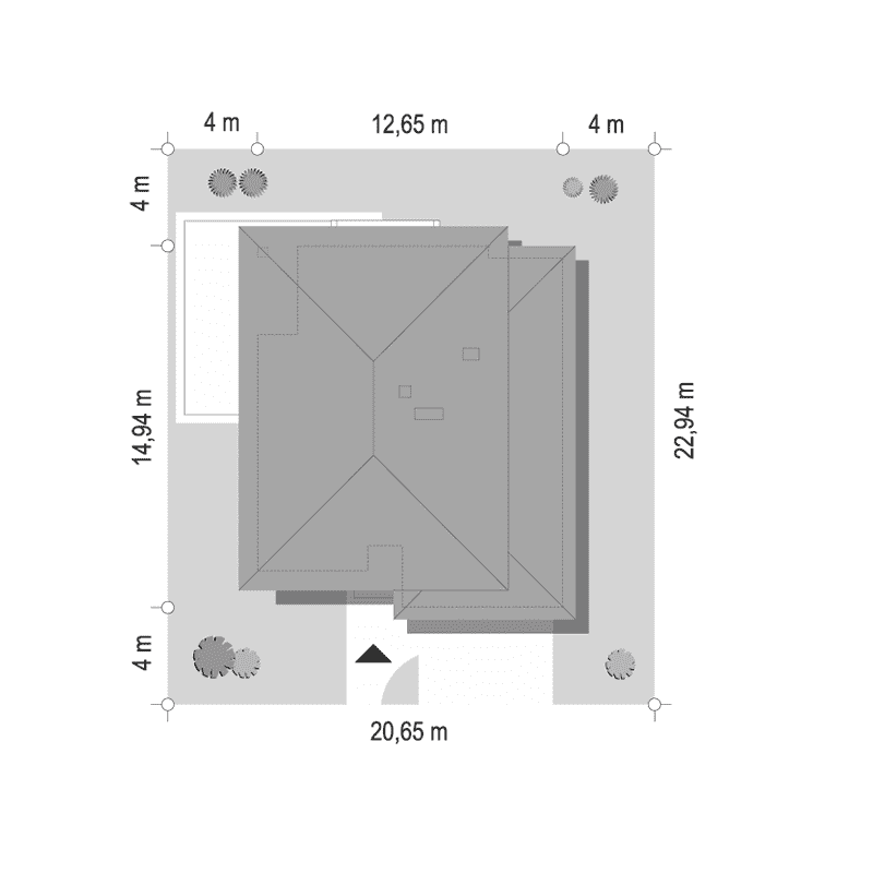 - Minimalne wymiary działki22.94 x 20.65m
