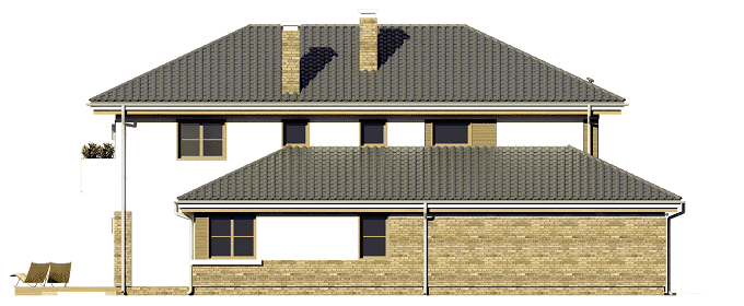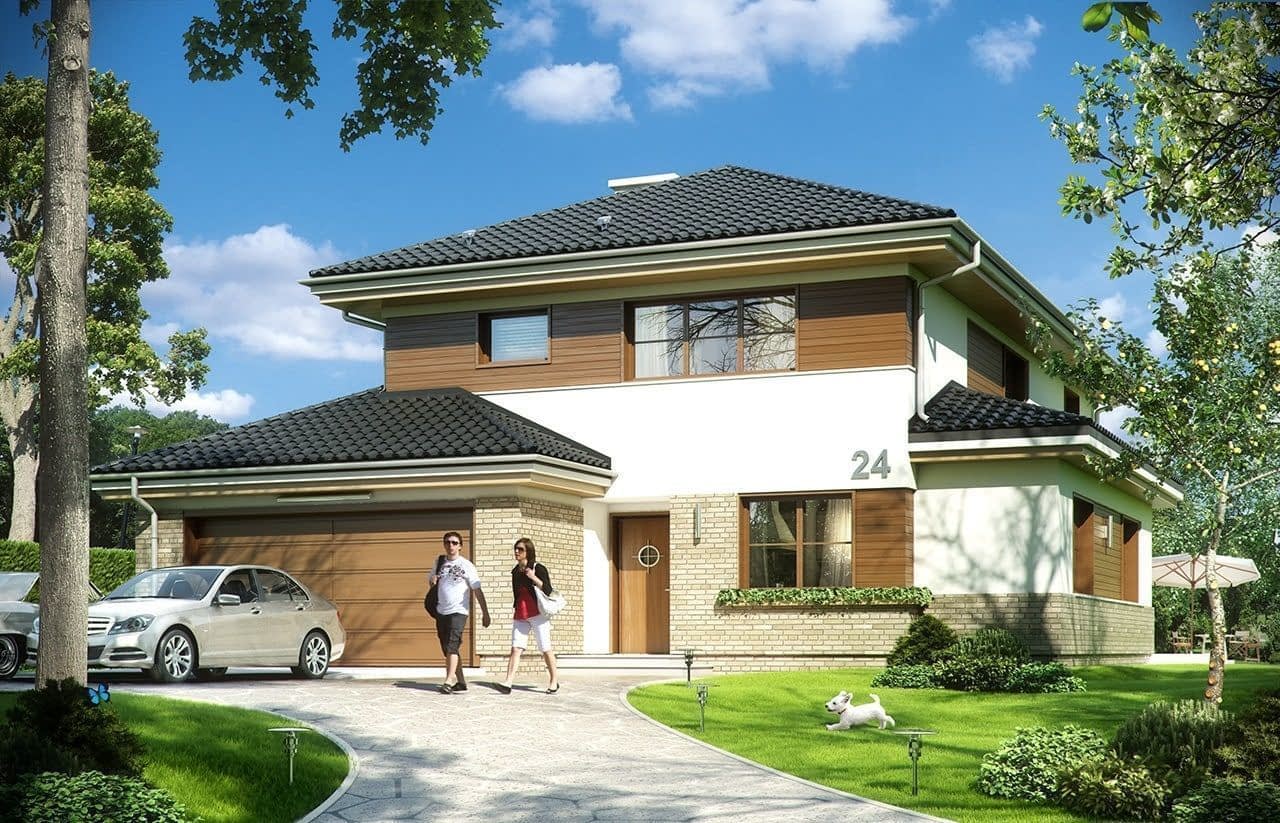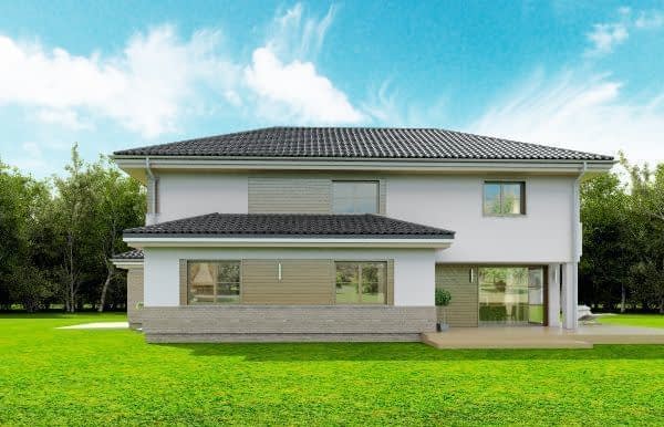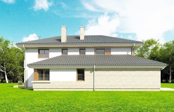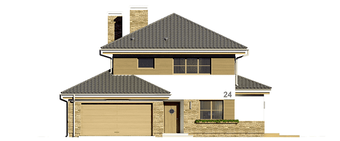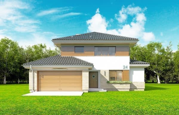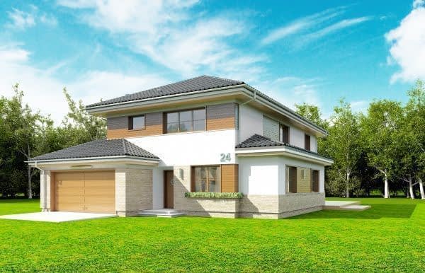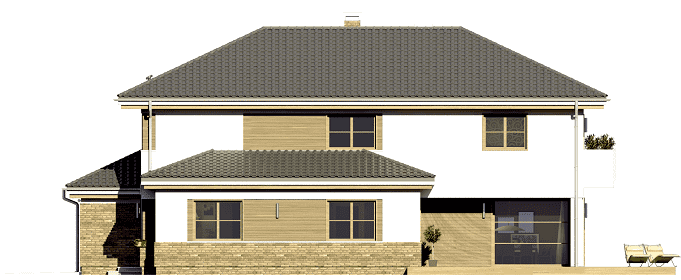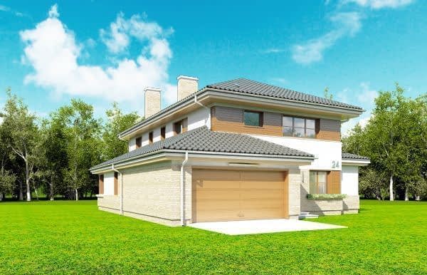 Projekt domu Kasjopea 5 jest wariantową wersją popularnego projektu Kasjopea. Dom został znacznie powiększony i stał się komfortową piętrową willą, z podwójnym garażem. Piętrowy podłużny rdzeń domu przekryty czterospadowym dachem otoczony jest parterowymi przybudówkami. Cała bryła ma urozmaicony kształt, dodatkowo wzbogacony dużymi przeszkleniami, okładzinami ścian, wykuszami i podcieniami. Całość tworzy nowoczesny, acz stonowany wygląd zewnętrzny. Wnętrze budynku podzielono na część dzienną na parterze i sypialnie na piętrze. Parter to przede wszystkim połączone salon, jadalnia i hol. Wyeksponowane reprezentacyjne schody, kominek, narożne okno balkonowe na taras i podcień – to elementy podnoszące atrakcyjność wnętrza. Duża kuchnia z dodatkowym kątem śniadaniowym i spiżarnią jest częściowo otwarta na jadalnię i hol. Na parterze miejsce znalazł też dodatkowy pokój-gabinet, lub sypialnia gościnna, oraz dwustanowiskowy garaż i kotłownia. Na piętrze przewidziano aż cztery pokoje, w tym sypialnię rodziców z oddzielną łazienką i garderobą, dużą ogólnodostępną łazienkę i pralnię. Dla domowników dodatkowo do dyspozycji są strychy - nad piętrem, oraz nad garażem i kotłownią. Projekt domu Kasjopea 5 to prawdziwa twierdza wśród projektów z tej serii - zawiera w sobie wszystkie pomieszczenia jakich można tylko wymagać od dużego komfortowego domu. Dom jest jednocześnie energooszczędny. Ma świetne izolacje, a zastosowane w nim nowoczesne technologie zmniejszają koszty utrzymania domu. Projekt dostępny jest w odbiciu lustrzanym oraz kilku wersjach: podstawowa (projekt domu Kasjopea) i jej wersja odświeżona (projekt domu Kasjopea 8), bliźniak (projekt domu Kasjopea 2), ze zmienionym układem pomieszczeń (projekt domu Kasjopea 3), pomniejszona (projekt domu Kasjopea 4), największa (projekt domu Kasjopea 6), z nowocześniejszą architekturą (projekt domu Kasjopea 7) oraz z wyższym kątem nachylenia dachu (projekt domu Kasjopea 7 B).