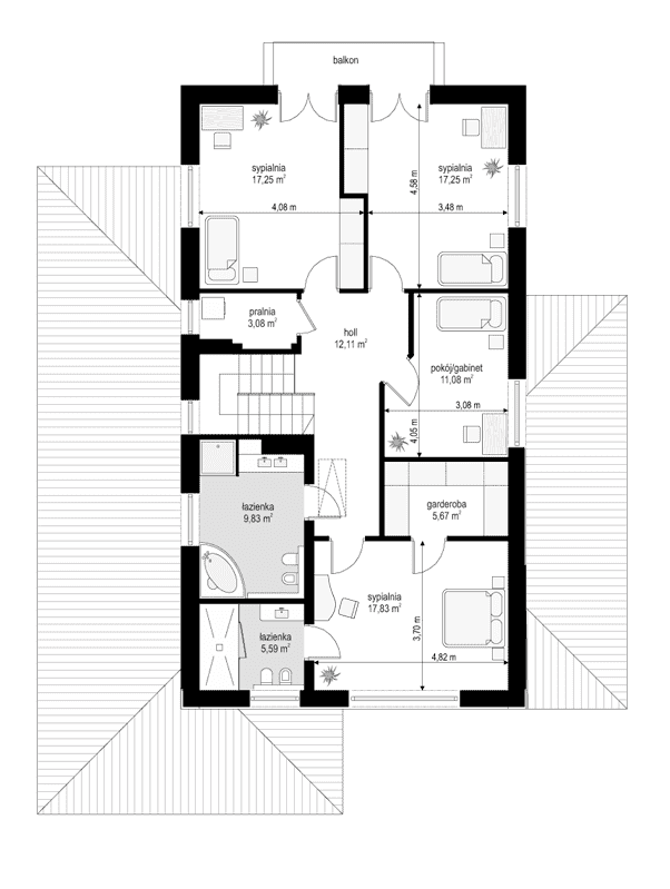 - Zmianę ukształtowania, ilości i kąta nachylenia połaci dachowych.