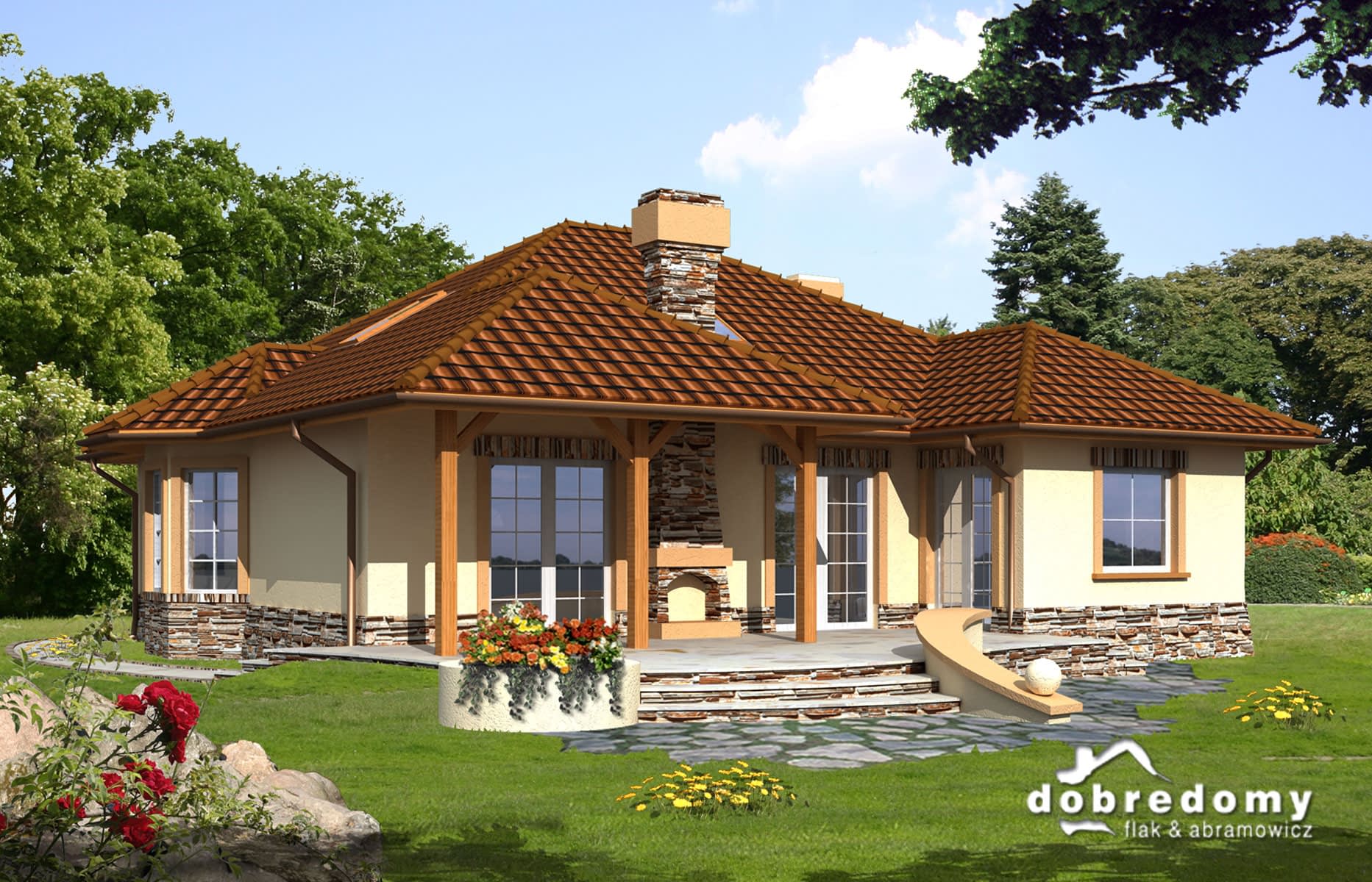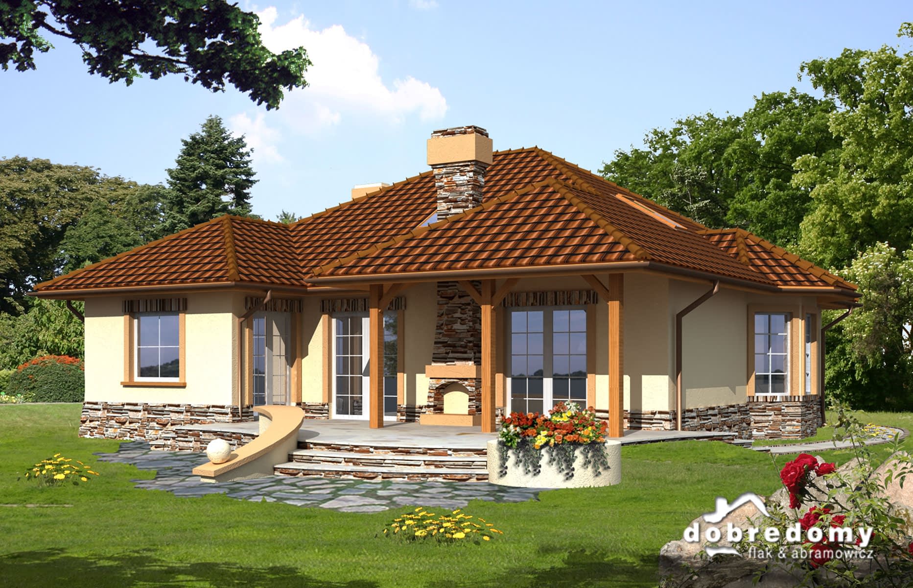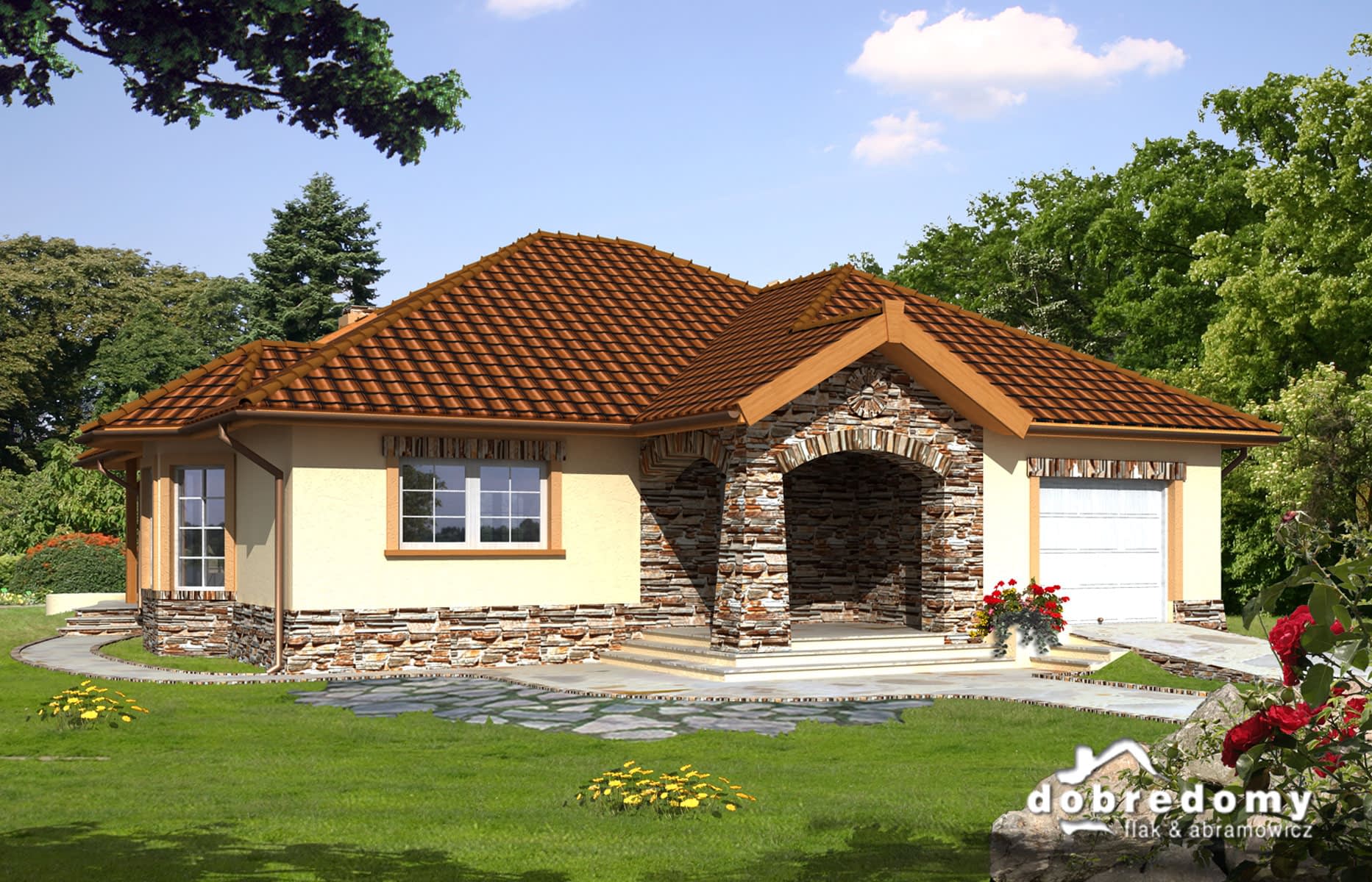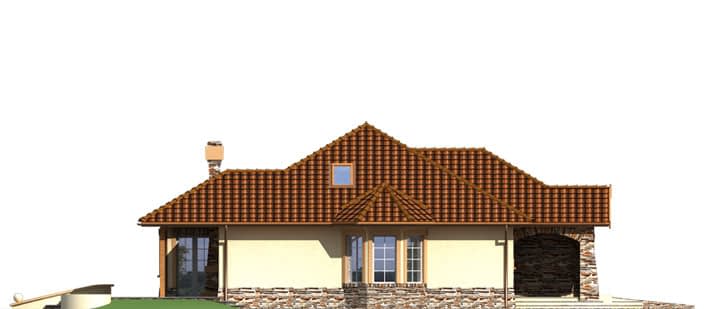 Dom parterowy z częściowo użytkowym poddaszem, niepodpiwniczony, przeznaczony dla 4-5 osobowej rodziny. Rzut parteru podzielony został na trzy strefy: ogólną - hall, kuchnia, jadalnia i pokój dzienny, intymną z dwoma sypialniami, ogólnodostępną łazienką oraz część gospodarczą. Dom posiada strych, na którym można wygospodarować dodatkowy pokój lub pracownię.