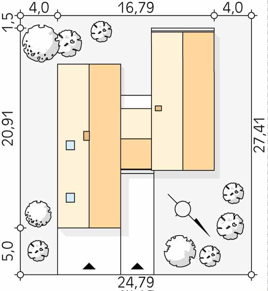 - Minimalne wymiary działki27.41 x 24.8m