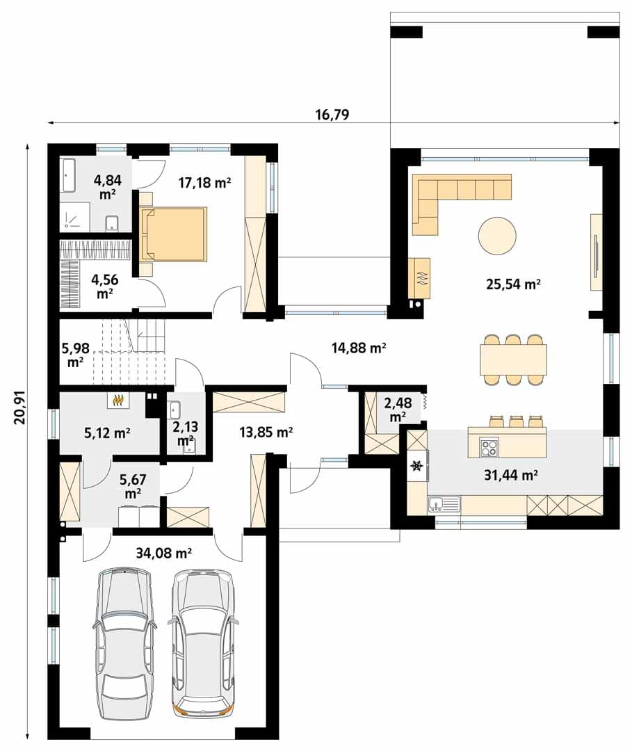 - Długość domu20.91 m