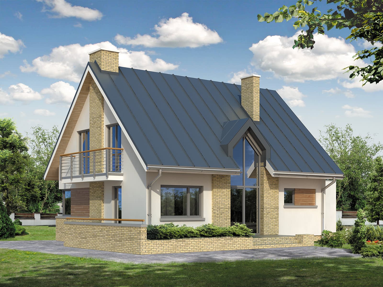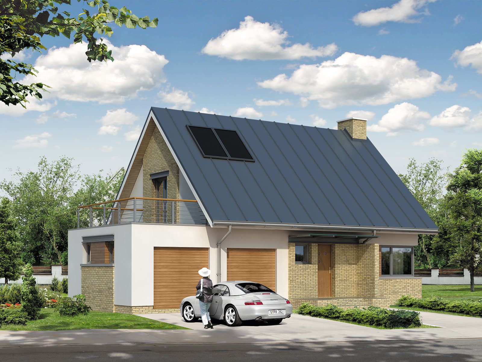 Mały dom jednorodzinny o prostej bryle i współczesnym charakterze. Przeznaczony dla 4 – 5-osobowej rodziny. Przestronne wnętrze z antresolą i przeszkleniem od strony ogrodu czyni go bardzo atrakcyjnym i funkcjonalnym. Dwustanowiskowy garaż. Taras nad garażem.Konstrukcja
