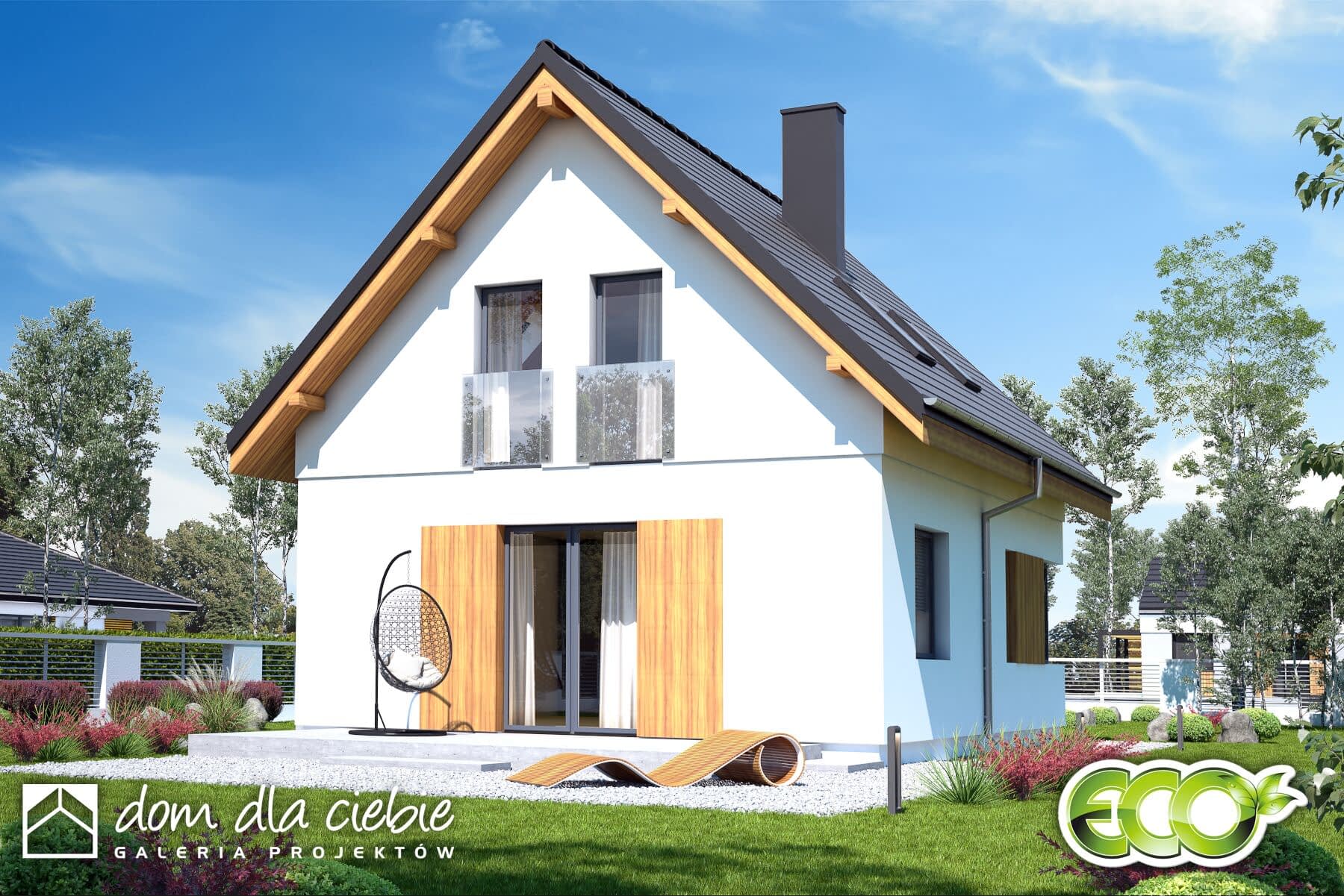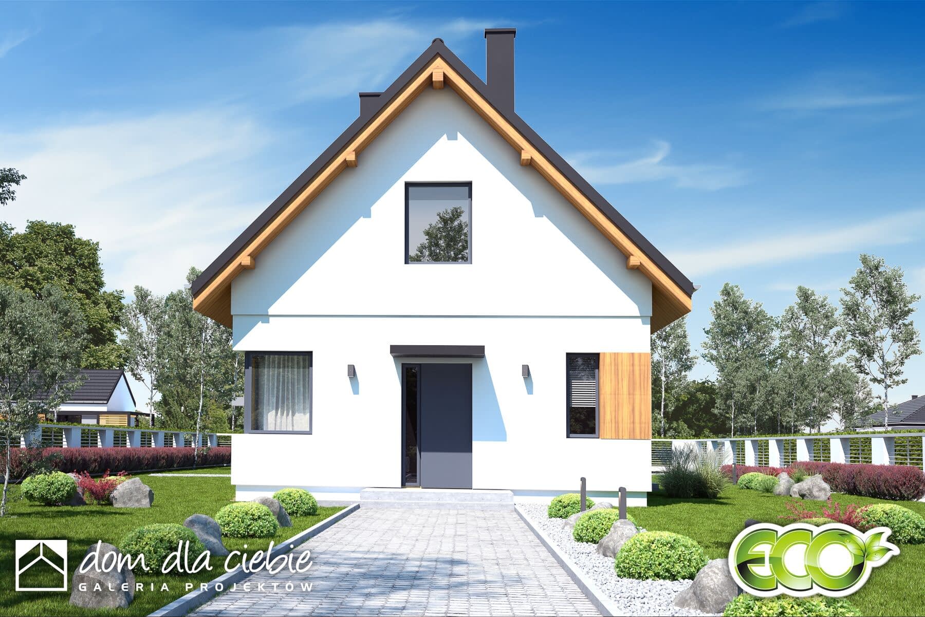Kiwi - niewielki dom z poddaszem, do 70mkw powierzchni zabudowy.