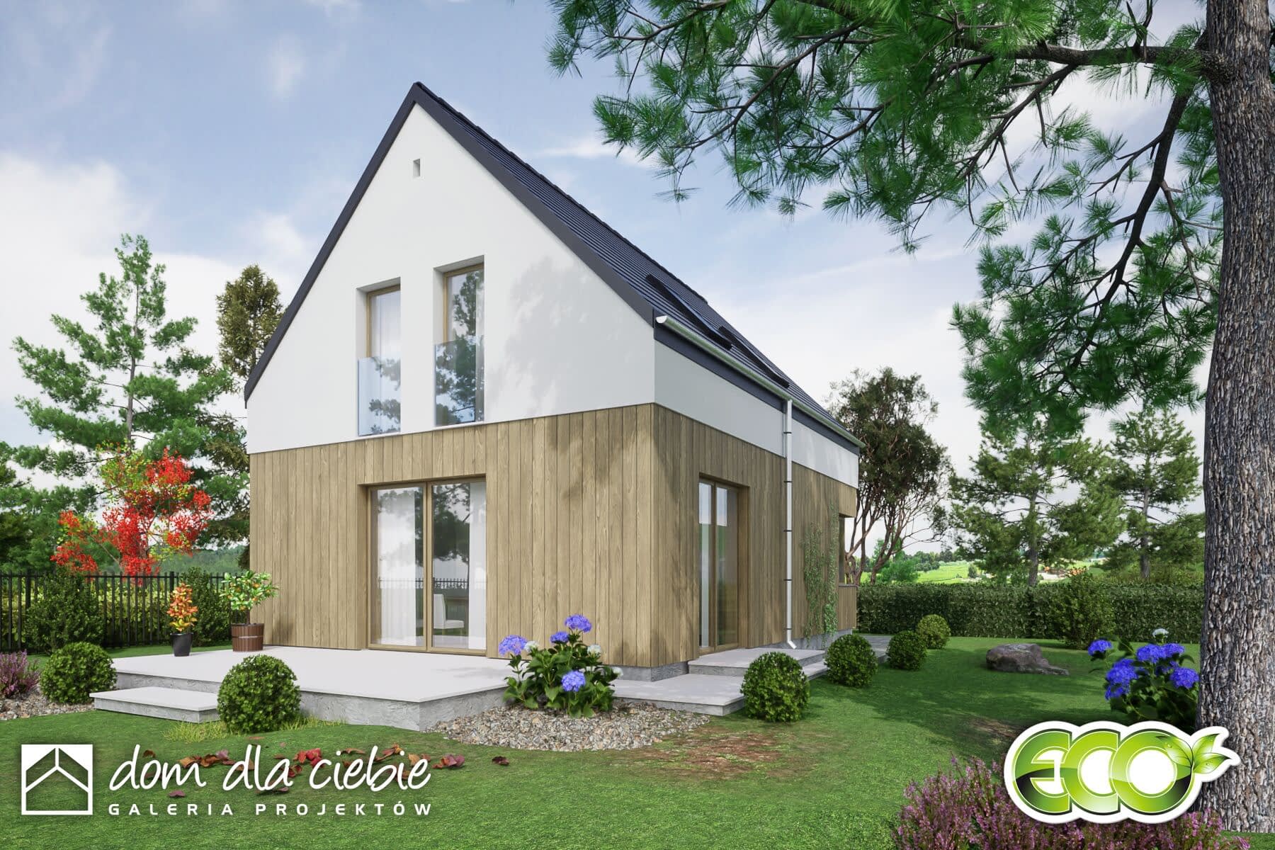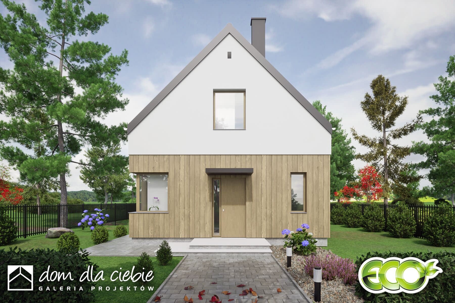 Kiwi II - niewielki dom z poddaszem, do 70mkw powierzchni zabudowy.
