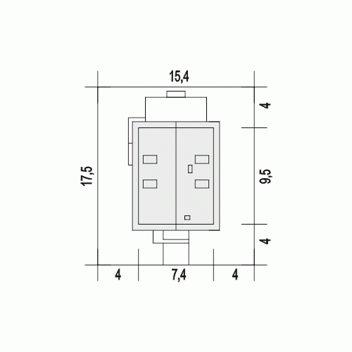 - Minimalne wymiary działki17.5 x 15.4m