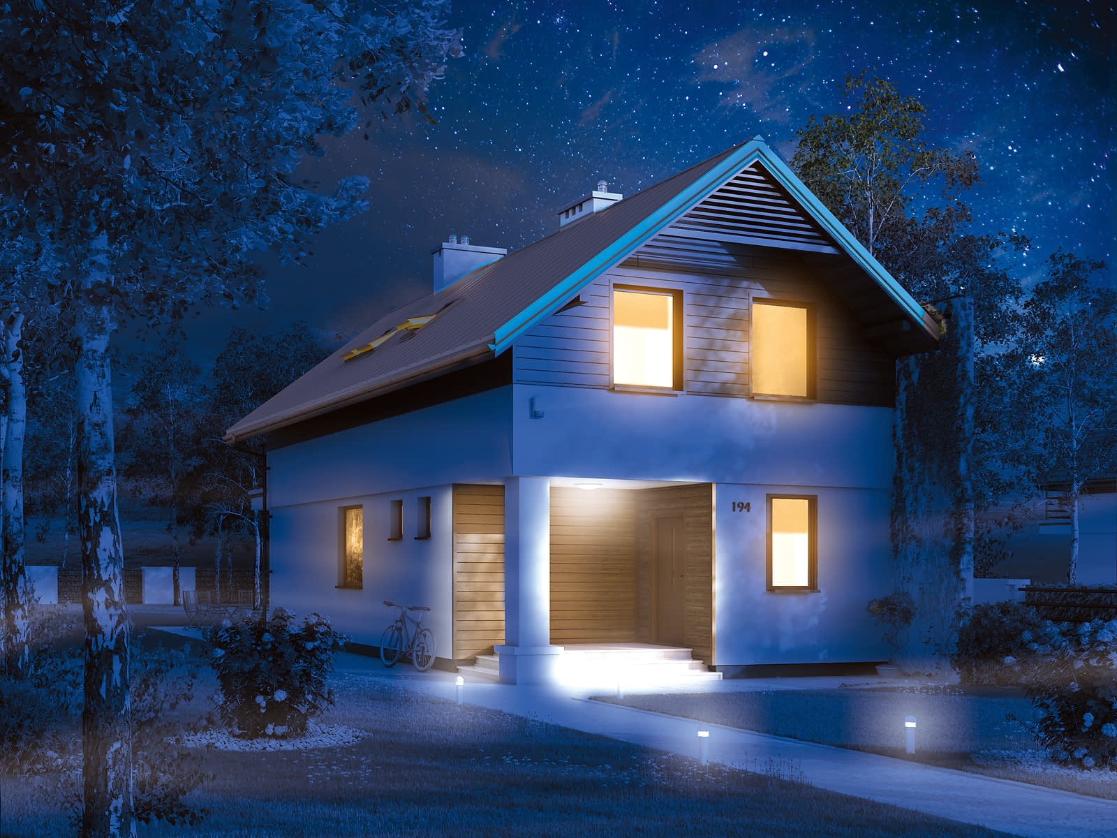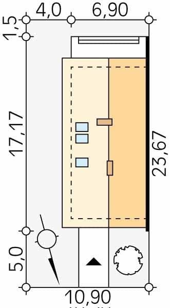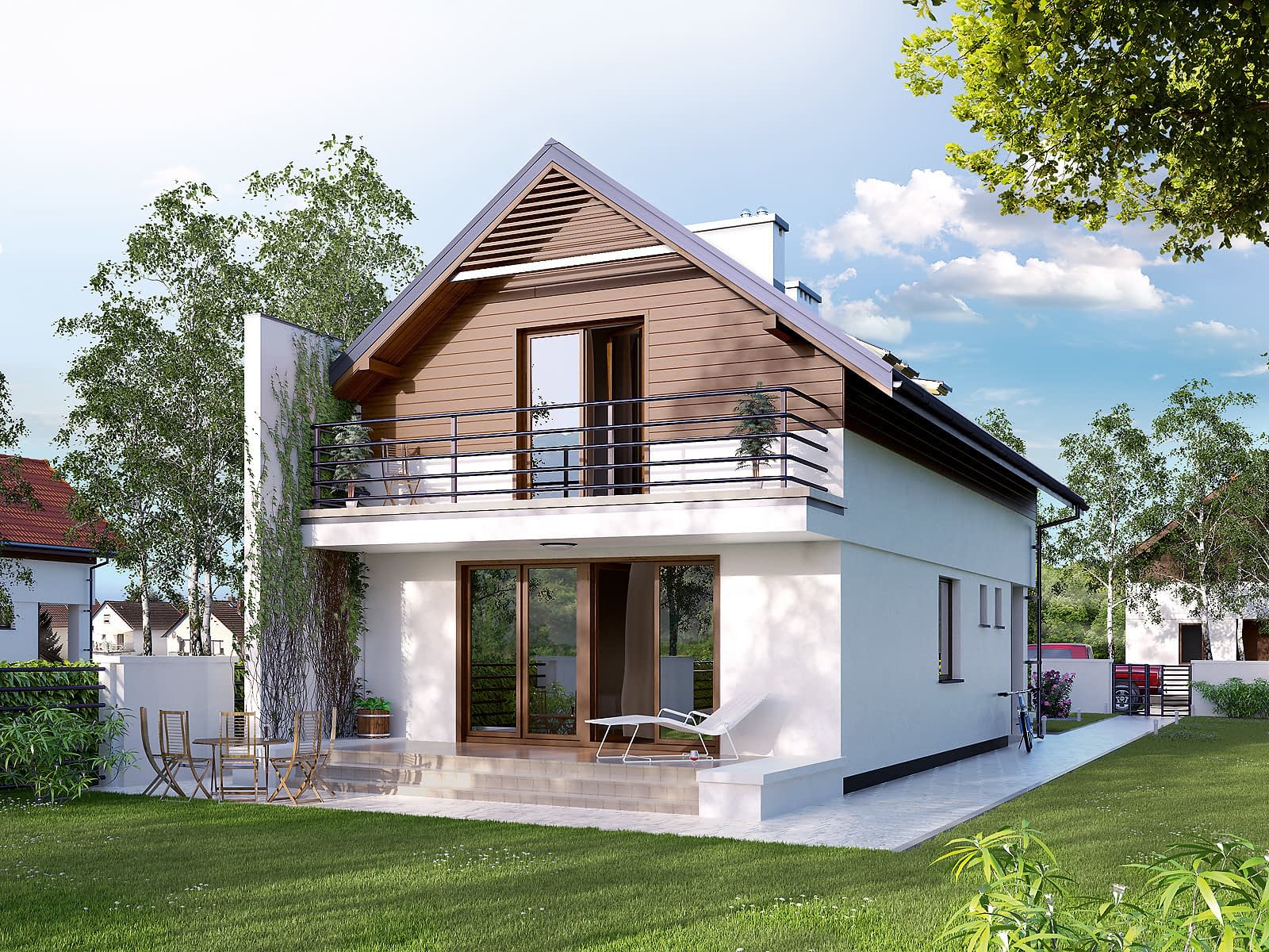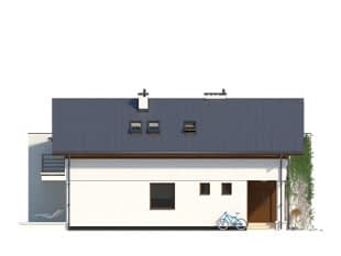 Projekt powstał z myślą o inwestorach, którzy planują zbudować dom w technologii murowanej. Wewnątrz domu zaprojektowano trzy sypialnie oraz dwie łazienki. Warto zwrócić uwagę na praktyczne usytuowanie garderoby. Prezentowany projekt jest idealny na wąską lub płytką działkę. Dom w stylu nowoczesnym został wyposażony w komplet energooszczędnych rozwiązań.Konstrukcja