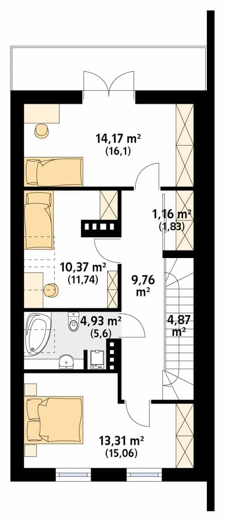 - rzuty poziome poszczególnych kondygnacji (parter, poddasze lub piętro),