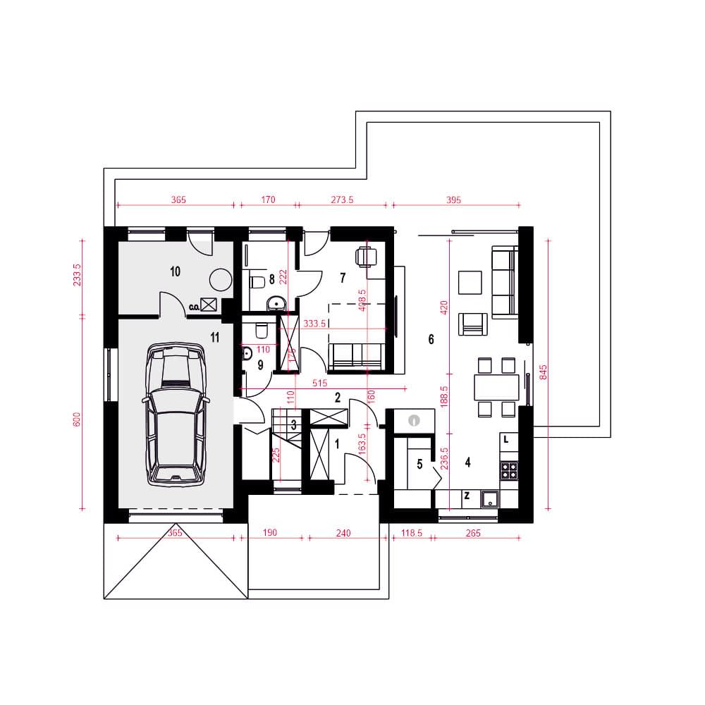 Projekt w fazie koncepcji dostępny z wydłużonym terminem realizacji. Przy zamówieniu ustalamy termin i pobieramy zadatek 50% podstawowej ceny projektu (jako koszty usługi przygotowania dokumentacji do standardu projektu gotowego, w przypadku rezygnacji z usługi, zadatek nie podlega zwrotowi).