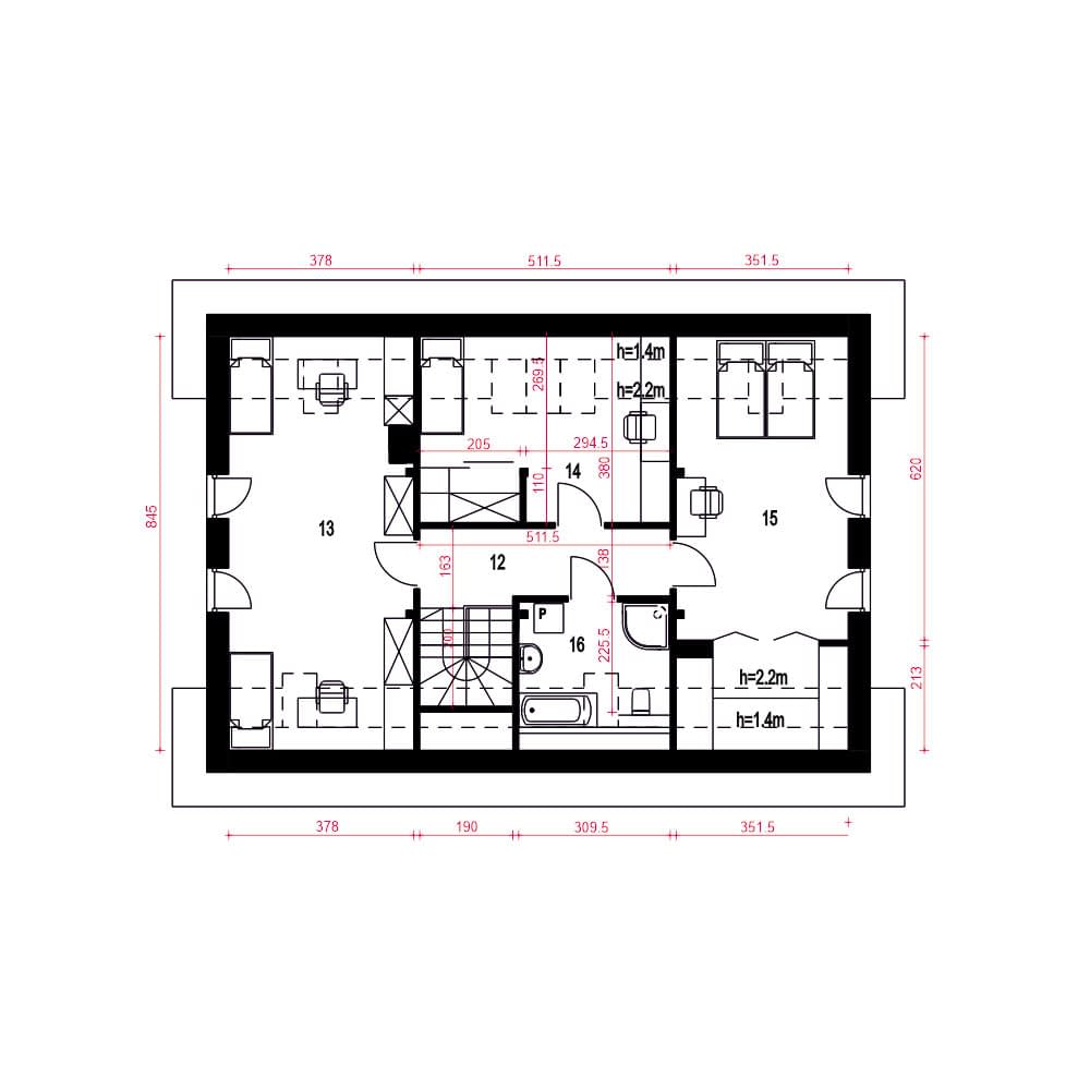 - Minimalne wymiary działki17.4 x 21.6m