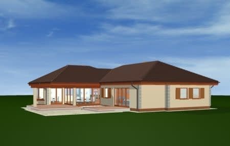 Projekt domu Komfortowy to duży, rozległy dom dla rodziny 4-6 osobowej. Zaprojektowany został z myślą o osobach uwielbiających kontakt z działką, nieznoszących biegania po schodach. Projekt domu Komfortowy posiada rzut parteru o rozbudowanym programie użytkowym, składającym się z części dziennej, części prywatnej z sypialniami i gospodarczej z garażem dwustanowiskowym. Dom ma atrakcyjny wygląd z każdej strony. Mimo sporej powierzchni dzięki rozczłonkowaniu brył nie stwarza wrażenia bardzo dużego od zewnątrz. Istnieje możliwość częściowego zagospodarowania poddasza, oraz podwyższenia sufitu nad salonem. Pracownia dysponuje także projektem domu Komfortowy w odbiciu lustrzanym. Zapraszamy do zapoznania się z innymi projektami domów: projekt domu Komfortowy, projekt domu Komfortowy 2, projekt domu Komfortowy 3.