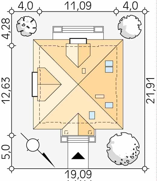 Ściany: 3-warstwowe - pustak ceramiczny + styropian, Stropy: żelbetowe, wylewane, Dach: dachówka ceramiczna,Rzuty