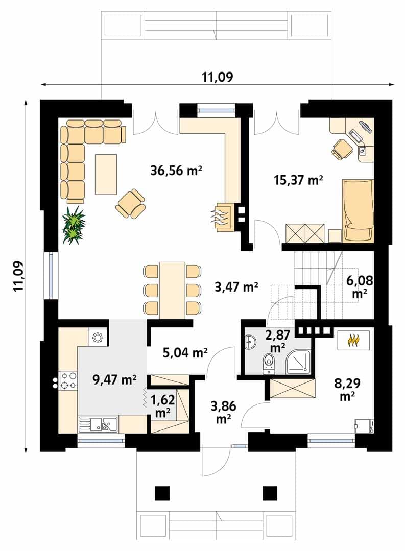 - Szerokość domu11.09 m