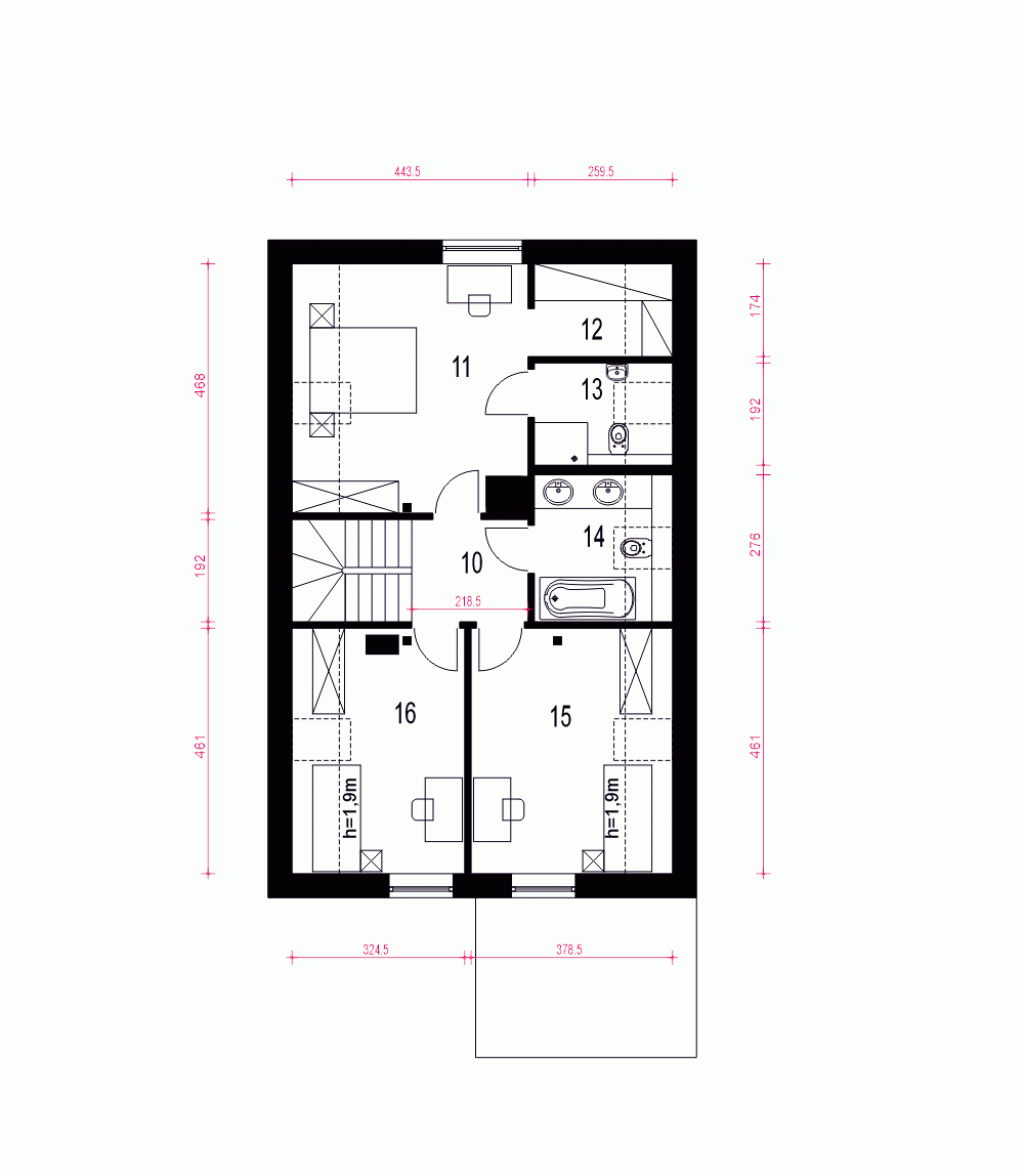 - Długość domu15.4 m