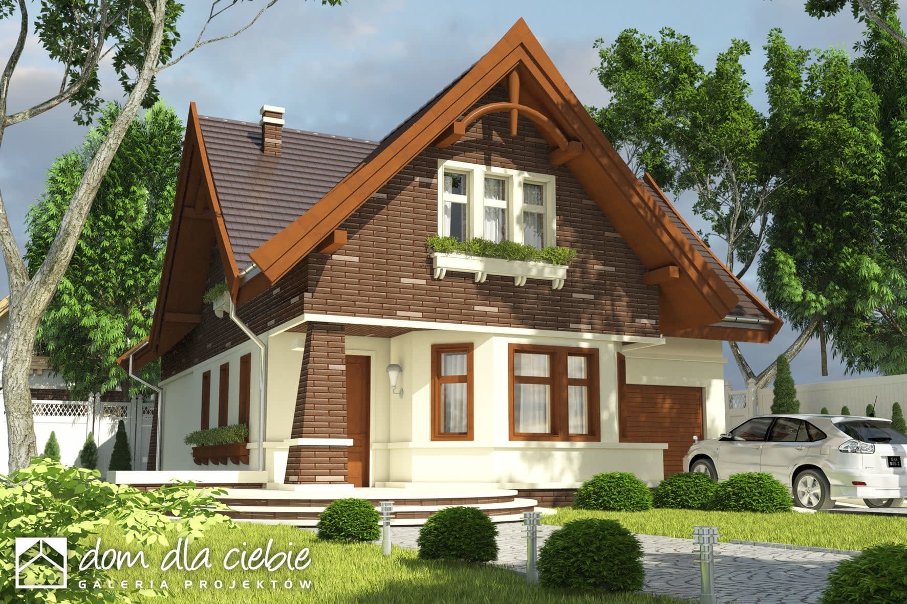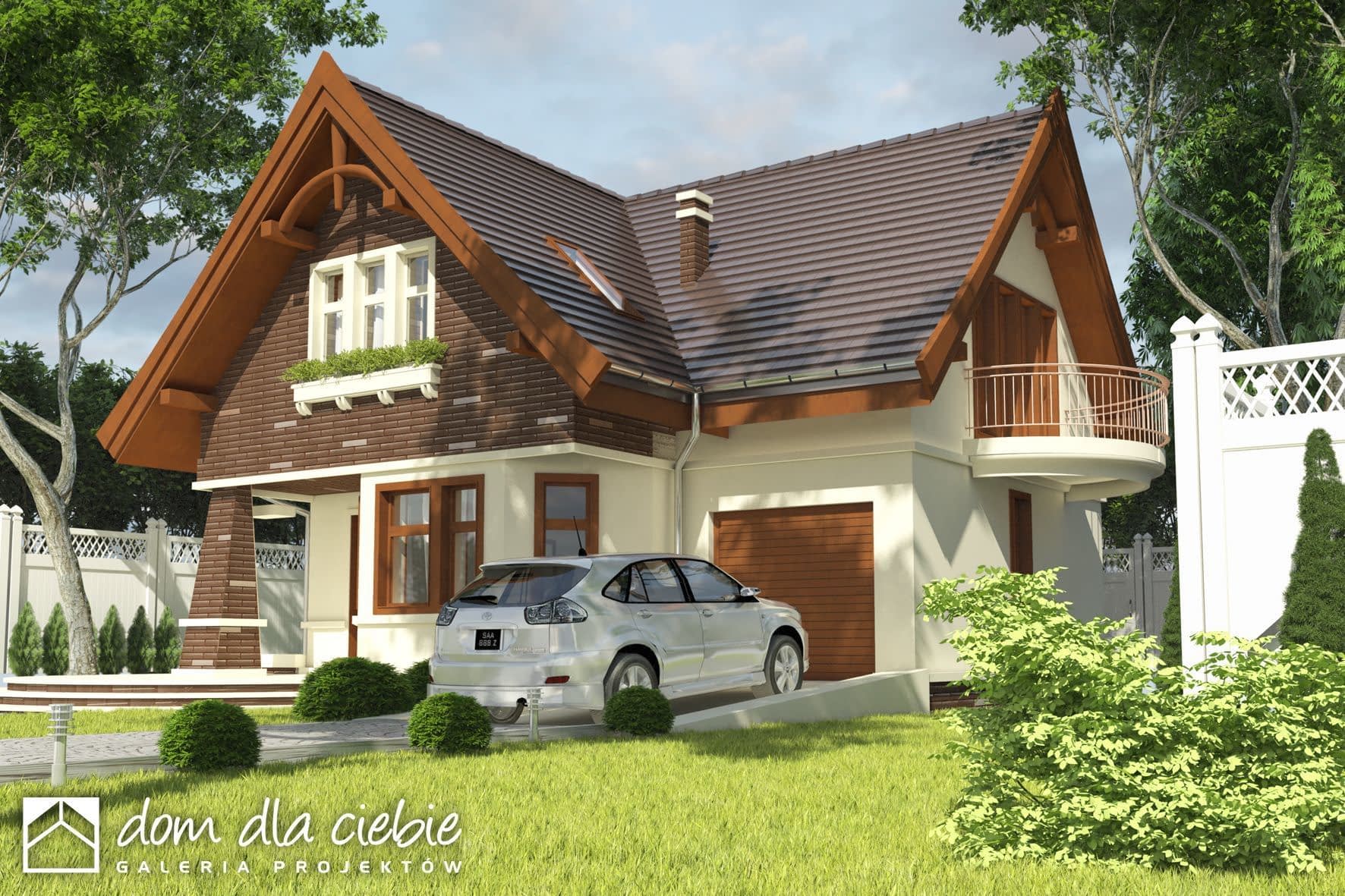 Przytulny, niewielki domek piętrowy dla 4-5 osobowej rodziny. Parter jako część ogólna obejmuje symetryczny i ustawny salon z kominkiem, otwartą kuchnię, pokój gościnny, łazienkę, wiatrołap oraz pomieszczenie gospodarcze z piecem CO przechodnie do garażu. Piętro to część prywatna, obejmująca: trzy sypialnie (z czego jedna ma osobna łazienkę) oraz z łazienkę wspólną.