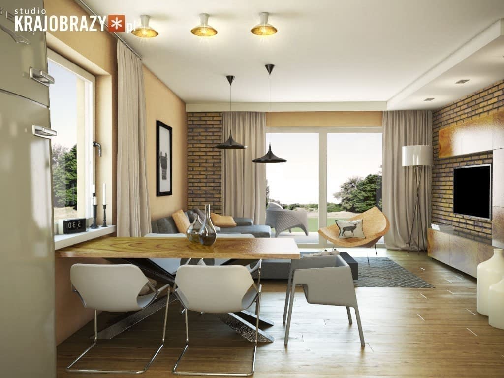 Darmowy zielony pakiet do projektu oznacza, że w tej samej cenie można otrzymać wariant z ogrzewaniem przy zastosowaniu ekologicznej pompy ciepła powietrze-woda i podłogówką we wszystkich pomieszczeniach, zamiast standardowego pieca gazowego zasilającego stalowe grzejniki płytowe.