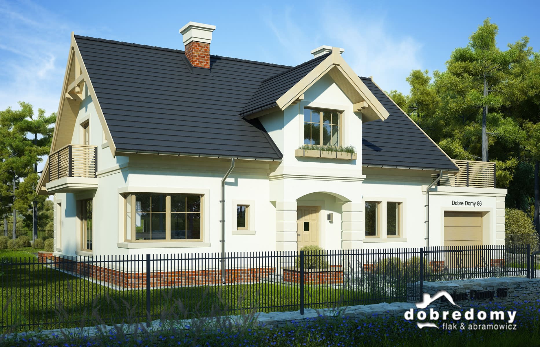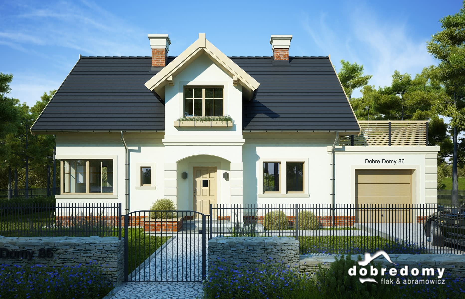 Dom z poddaszem użytkowym zaprojektowany z myślą o 4-5-osobowej rodzinie. Parter to otwarta strefa dzienna (kuchnia oraz pokój dzienny wraz z jadalnią), dodatkowy pokój, łazienka, garderoba oraz pomieszczenie gospodarcze, z którego jest wejście do jednostanowiskowego garażu. Na poddaszu zaplanowano trzy sypialnie oraz dużą łazienkę z pralnią. Projekt dostępny w wersjach z wykuszem: z wiatą - Kreta III oraz z garażem jednostanowiskowym - Kreta I A.