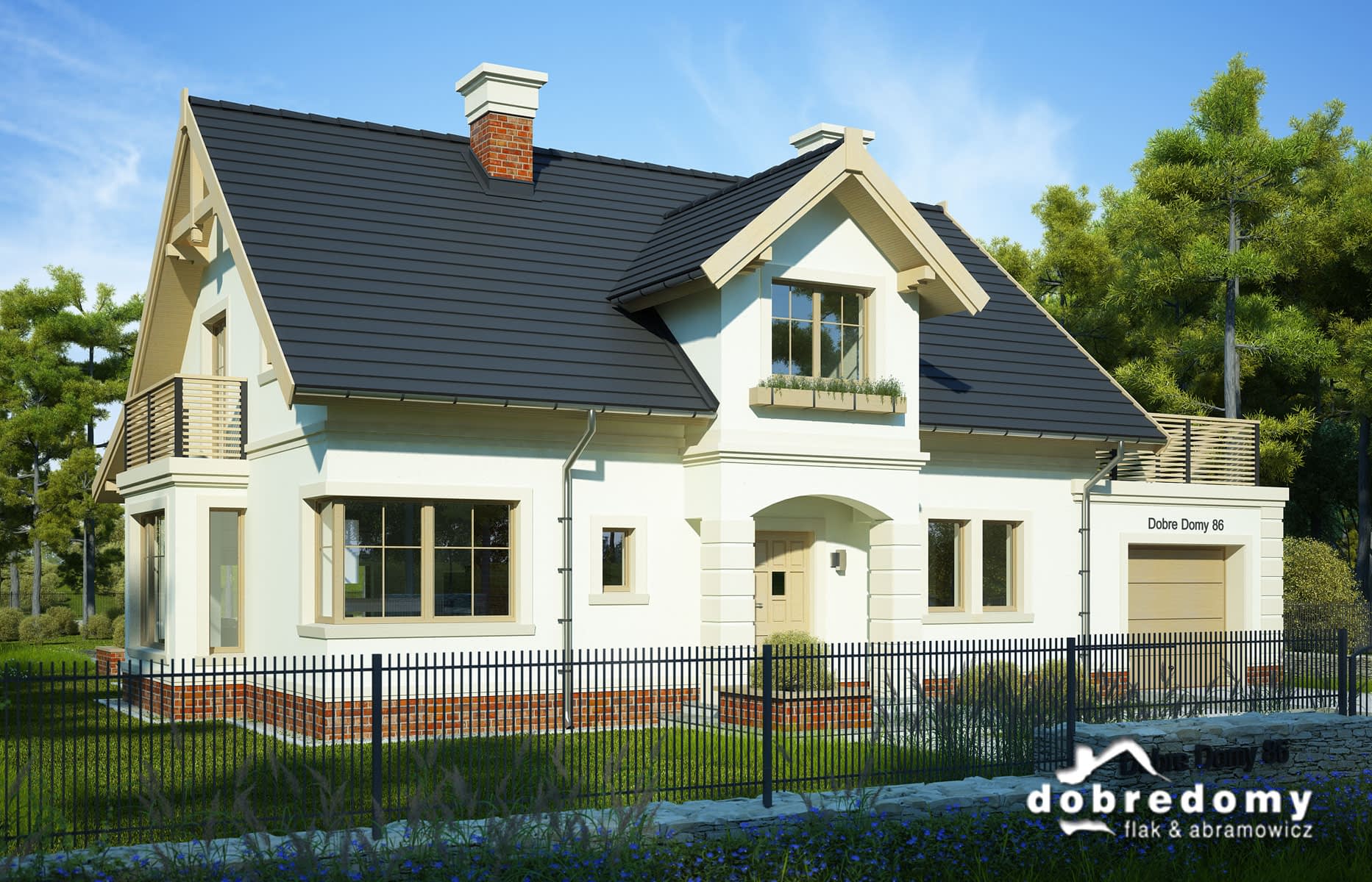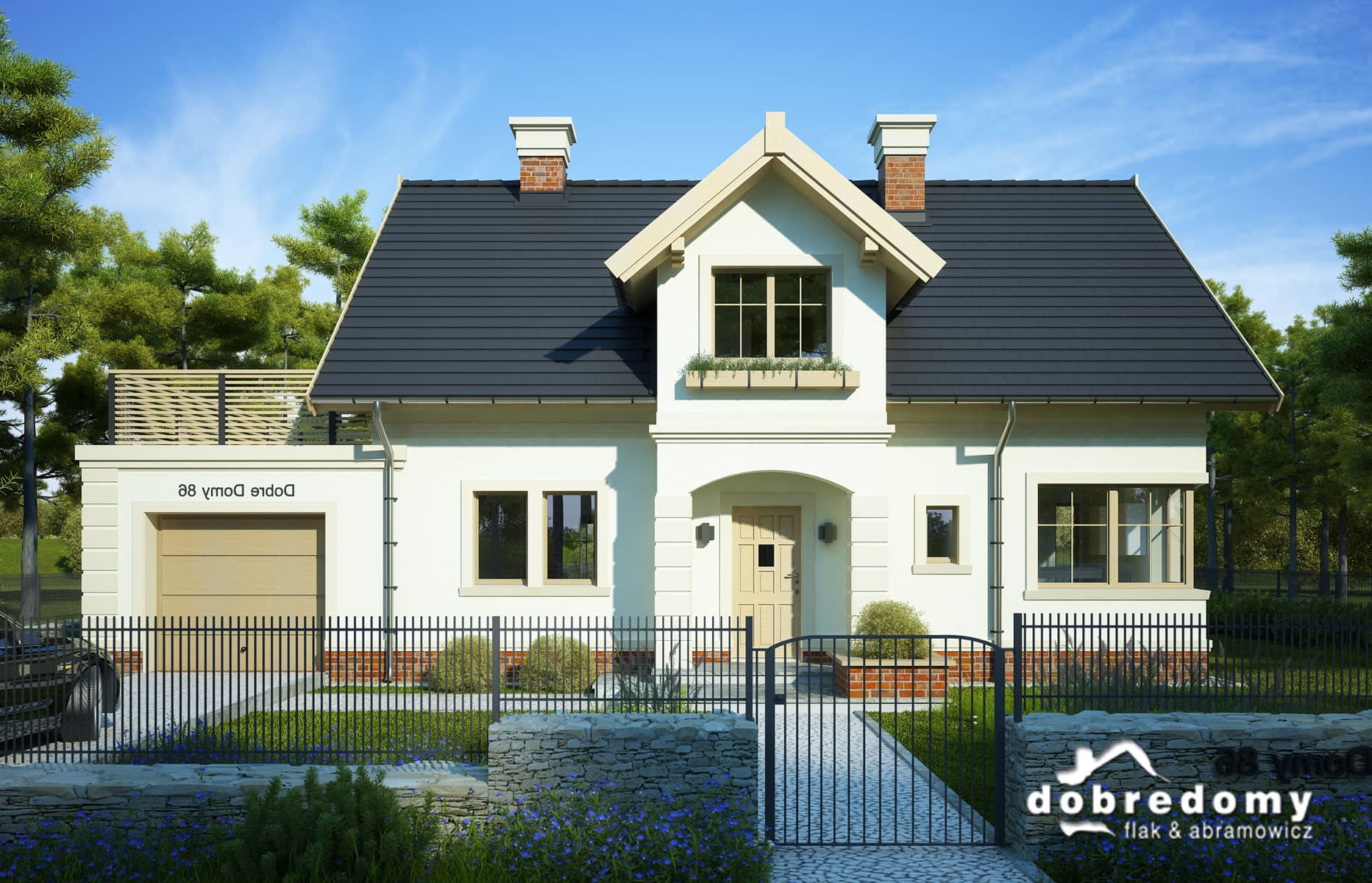 Dom z poddaszem użytkowym zaprojektowany z myślą o 4-5-osobowej rodzinie. Parter to otwarta strefa dzienna (kuchnia oraz pokój dzienny wraz z jadalnią), dodatkowy pokój, łazienka, garderoba oraz pomieszczenie gospodarcze, z którego jest wejście do jednostanowiskowego garażu. Na poddaszu zaplanowano trzy sypialnie oraz dużą łazienkę z pralnią. Projekt dostępny w wersji bez wykuszu - Kreta I oraz w wersji z wykuszem i wiatą garażową - Kreta III.