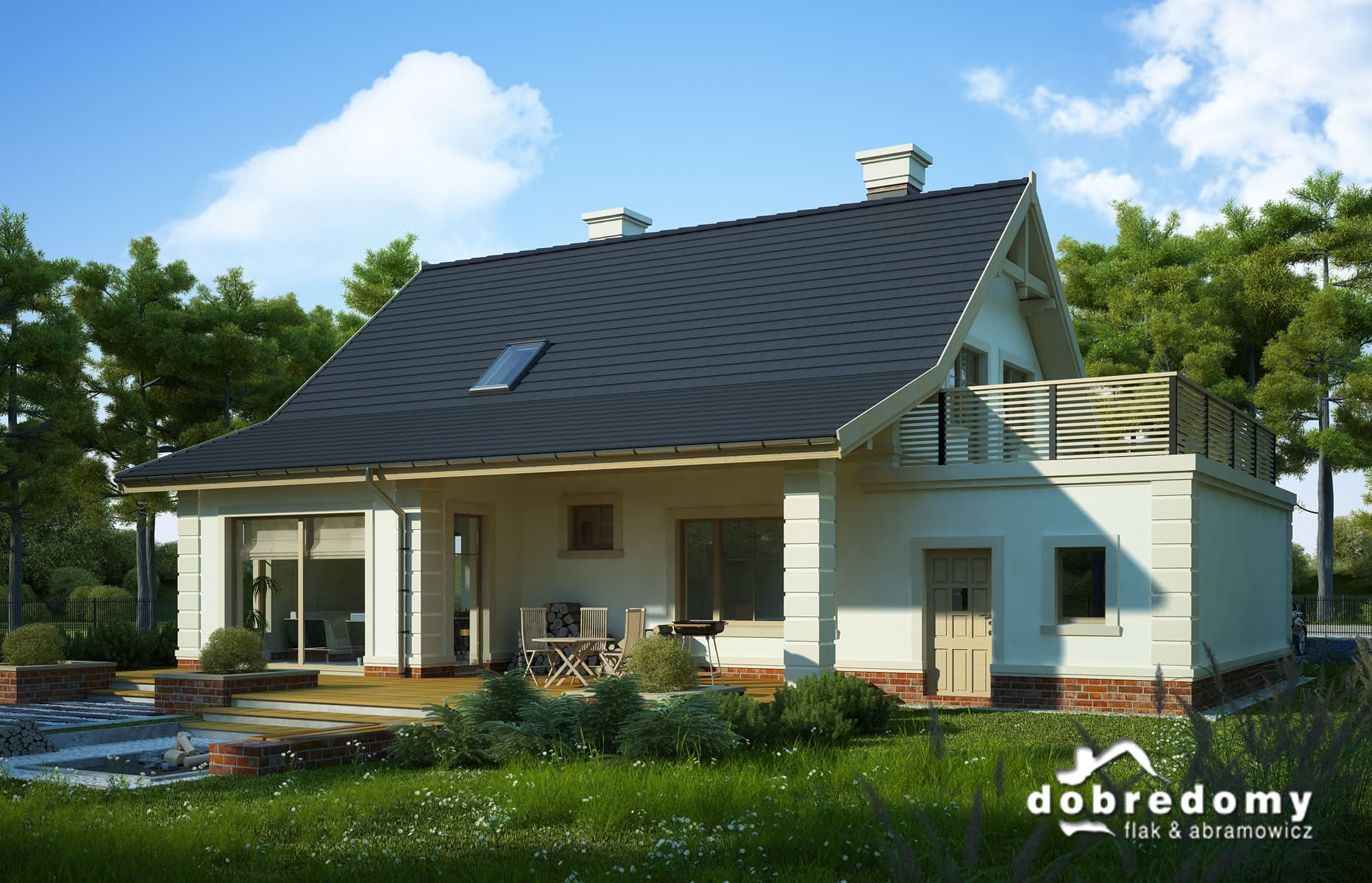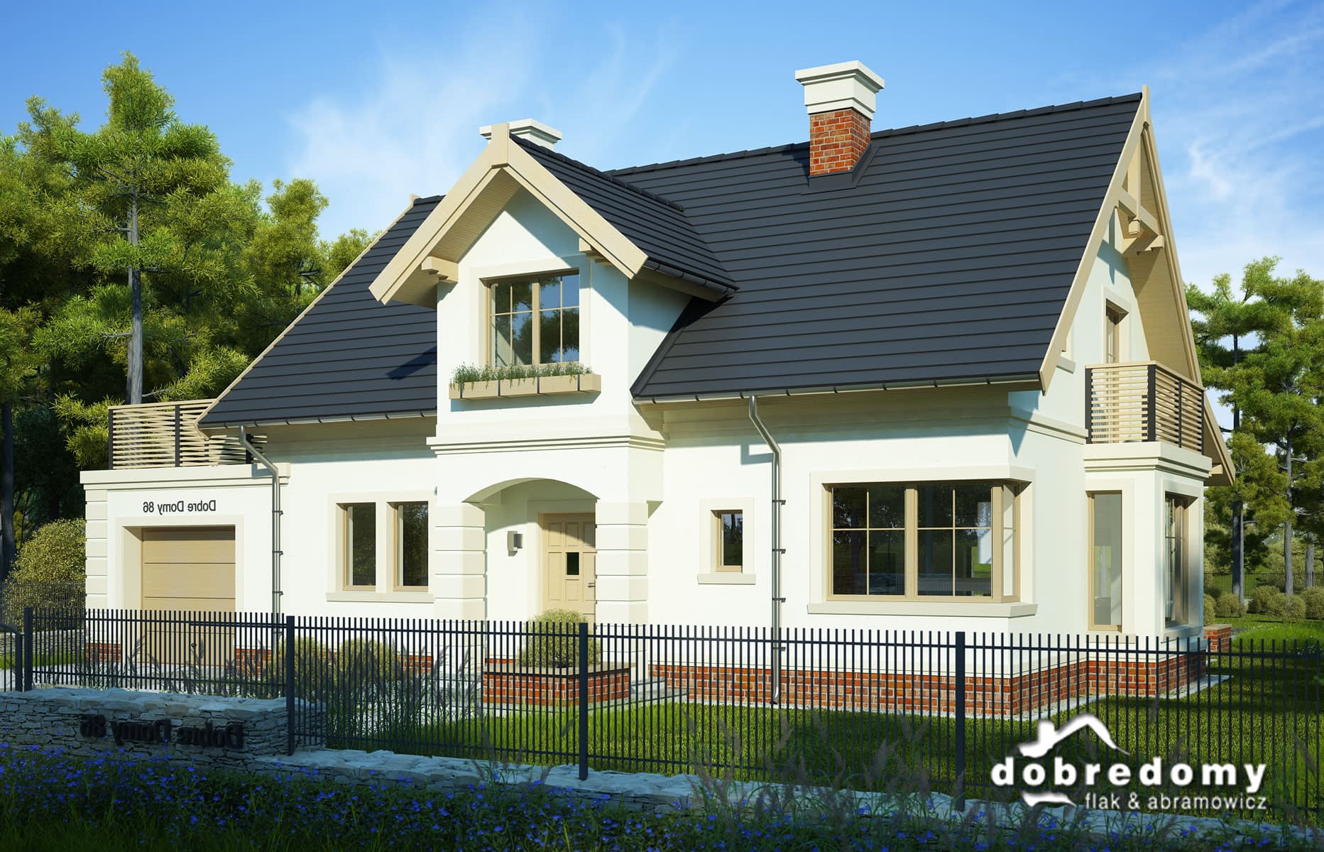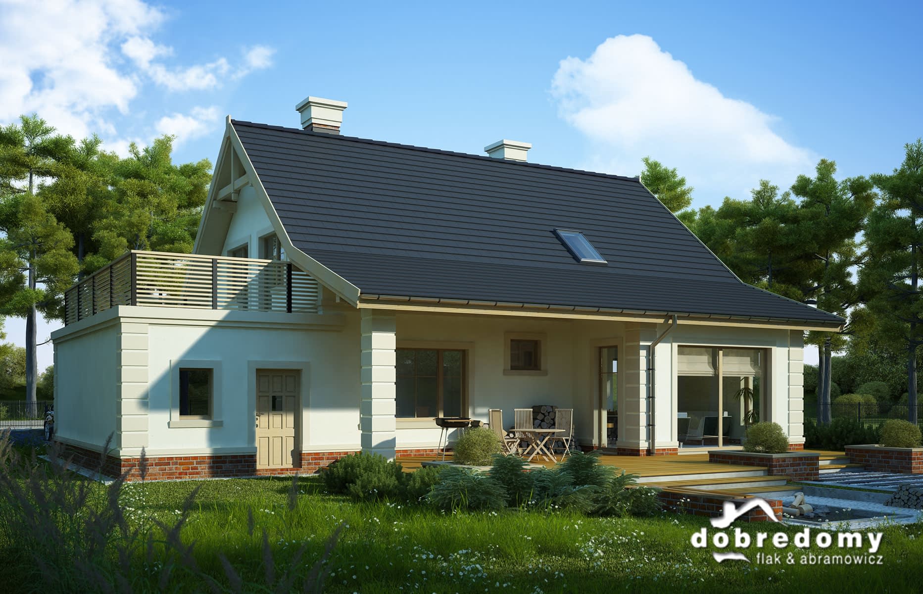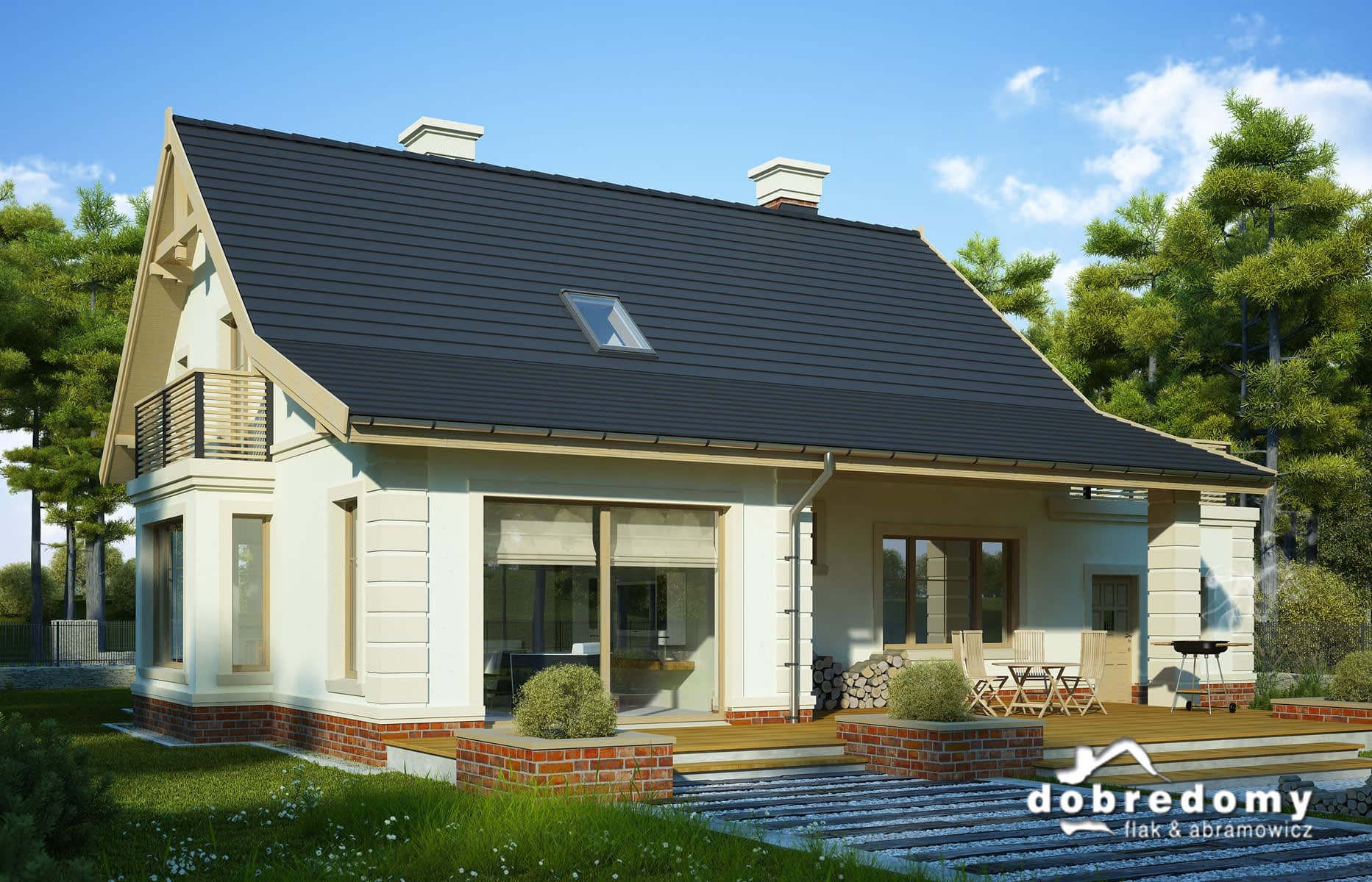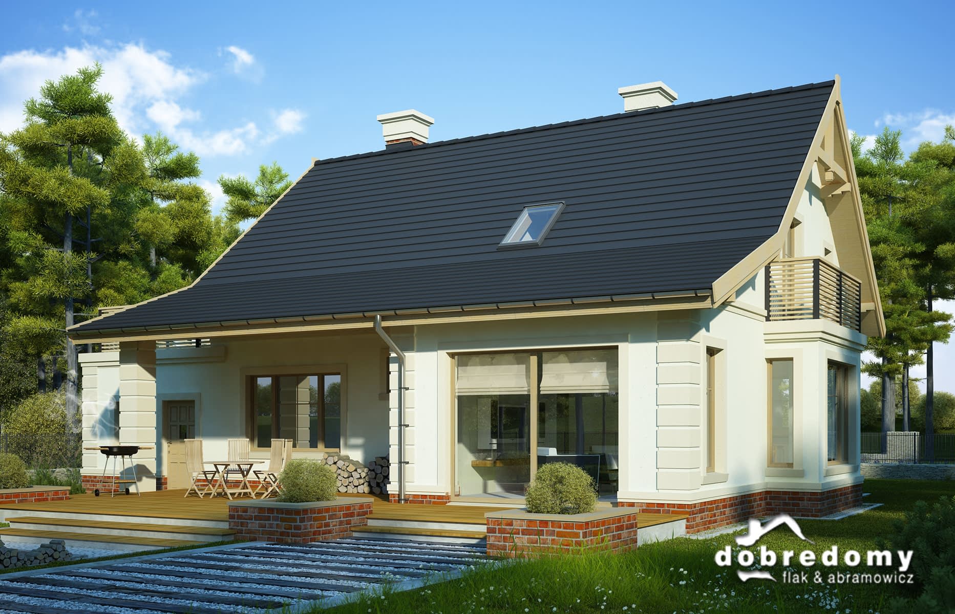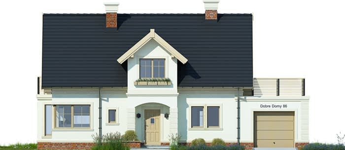 Elewacje pokryte okładziną klinkierową oraz tynkiem strukturalnym w systemie ociepleń Termo Organika. W projekcie zastosowano okna dachowe marki FAKRO. Pokrycie dachu - dachówka ceramiczna lub cementowa CREATON.