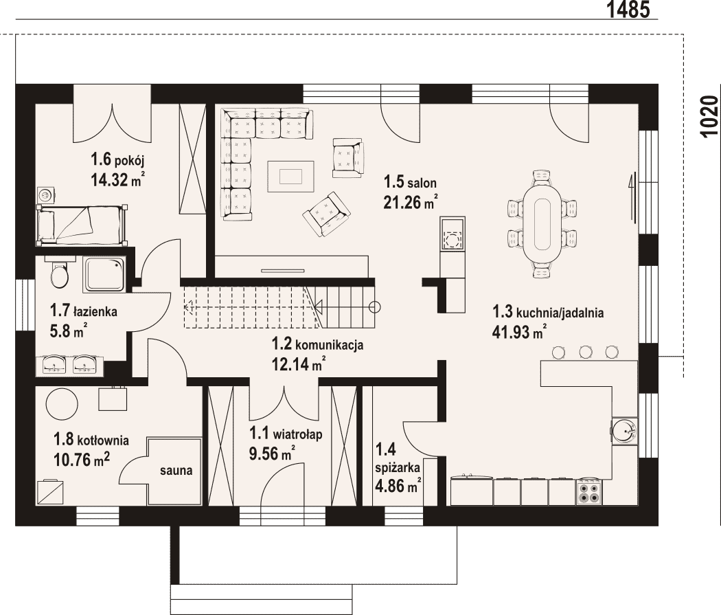 - 1.3 - kuchnia/jadalnia41.93 m²