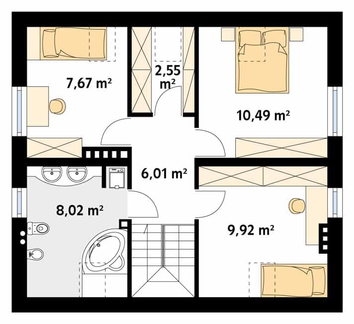 - rzuty poziome poszczególnych kondygnacji (parter, poddasze lub piętro),