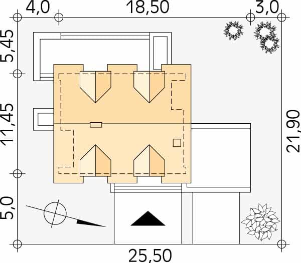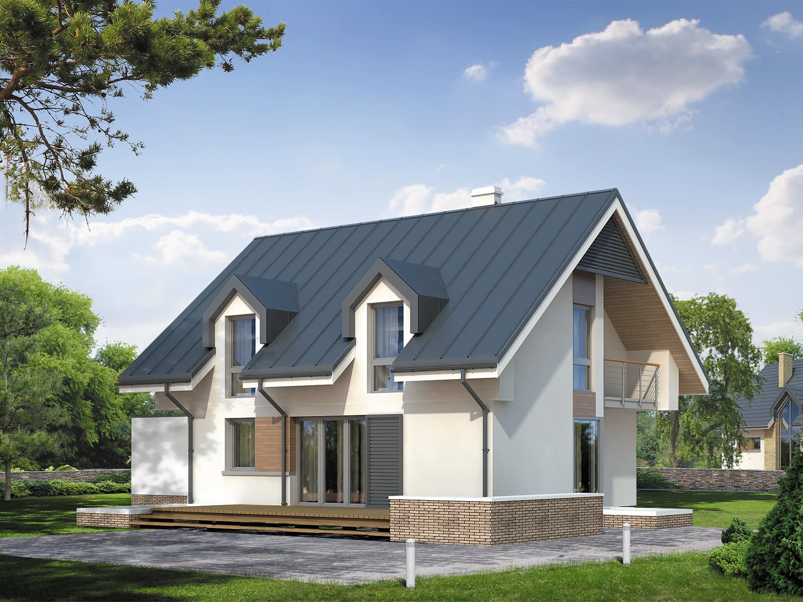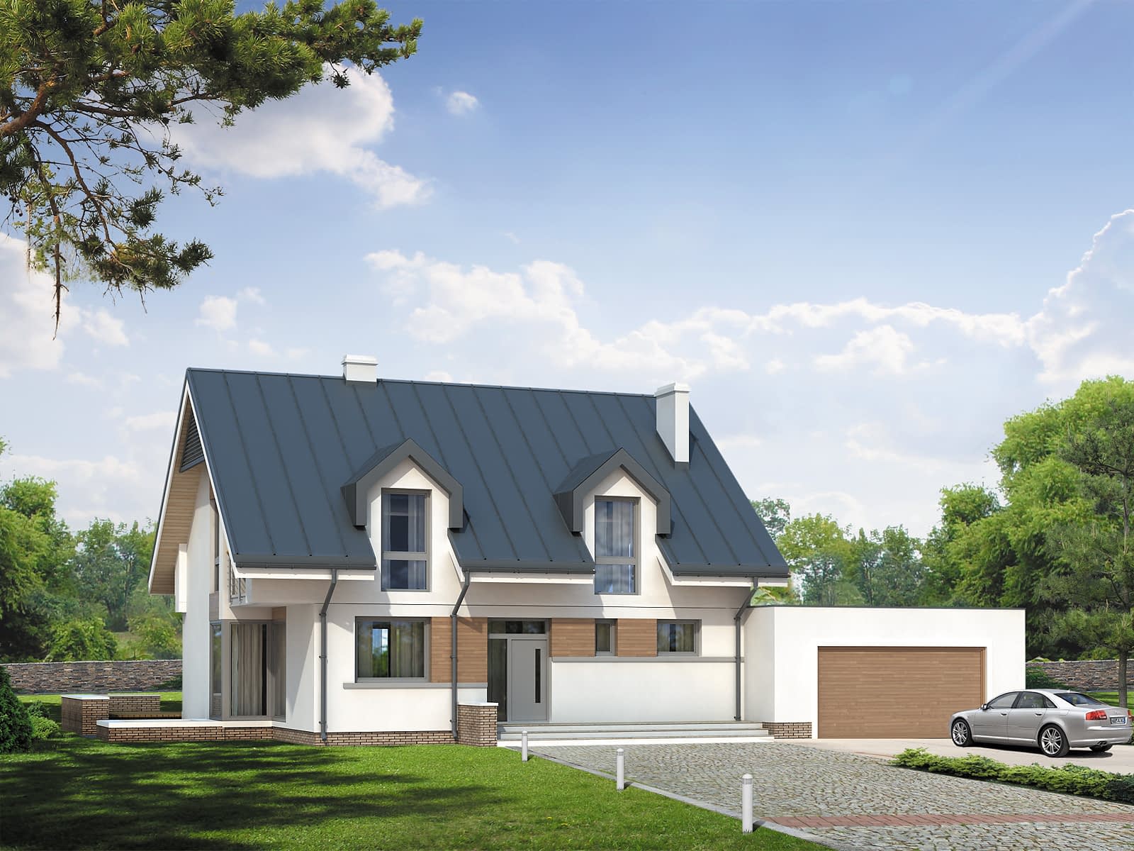 Dom mieszkalny, jednorodzinny, przeznaczony dla 3 – 4-osobowej rodziny. Nowoczesne elementy domu podkreślają jego oryginalność. Istnieje możliwość wybudowania domu bez garażu.Konstrukcja