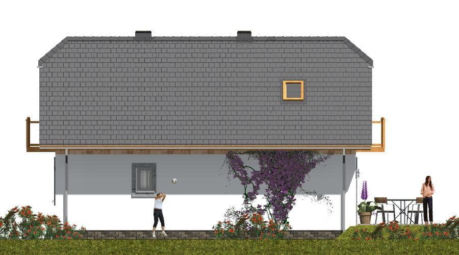 Budynek jednorodzinny, parterowy, z poddaszem mieszkalnym, niepodpiwniczony, 5 pokoi, kuchnia z aneksem jadalnymRzuty