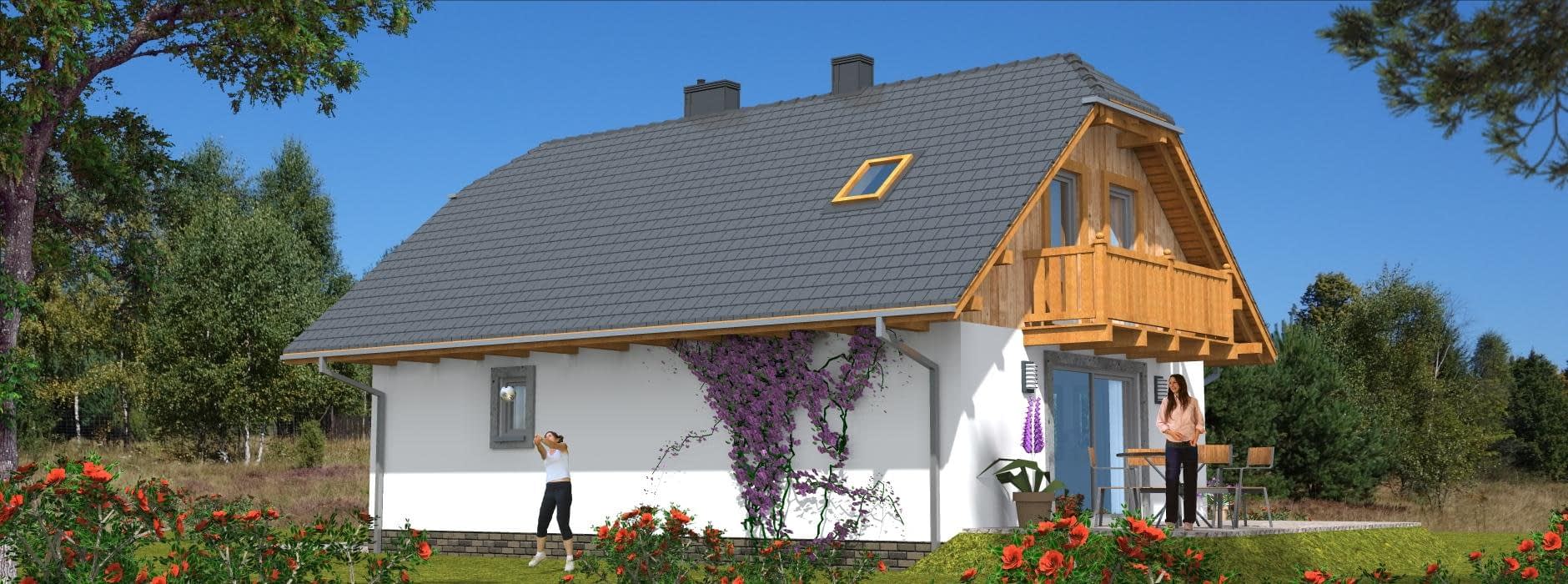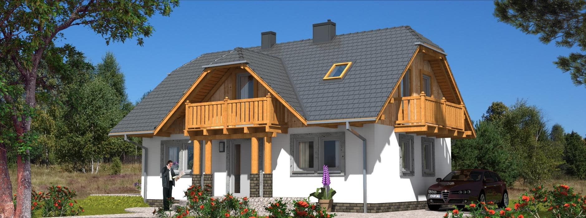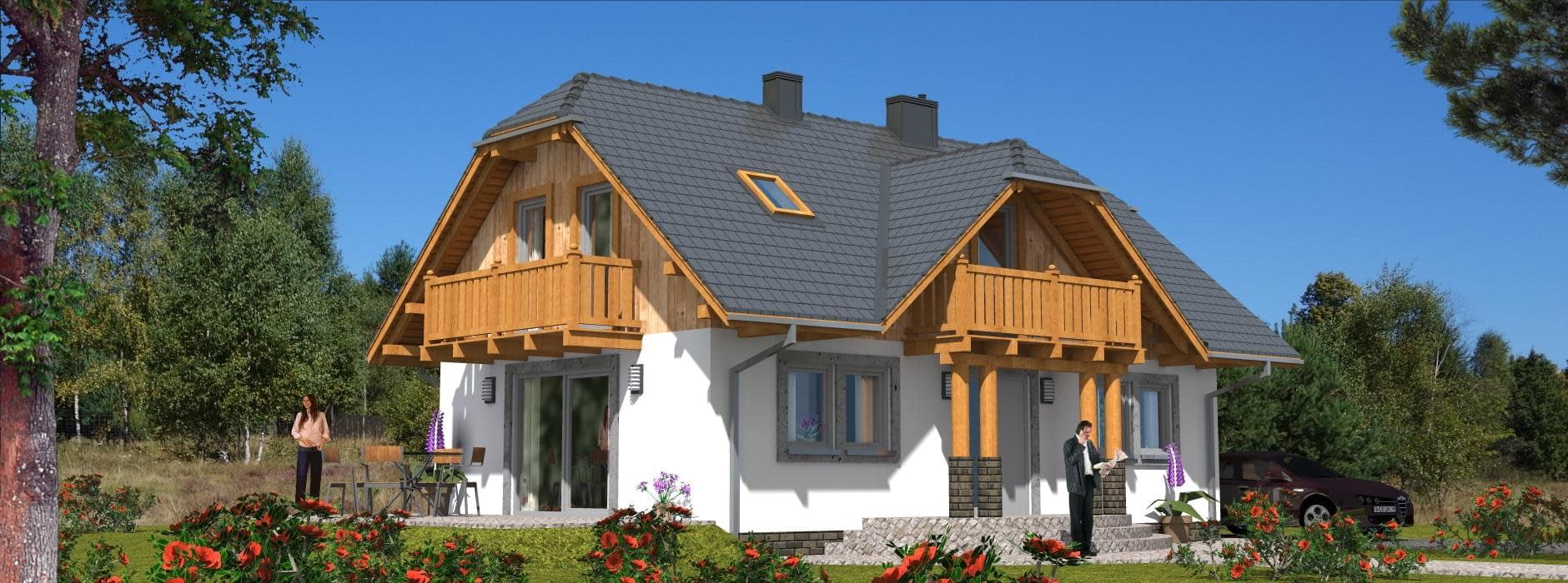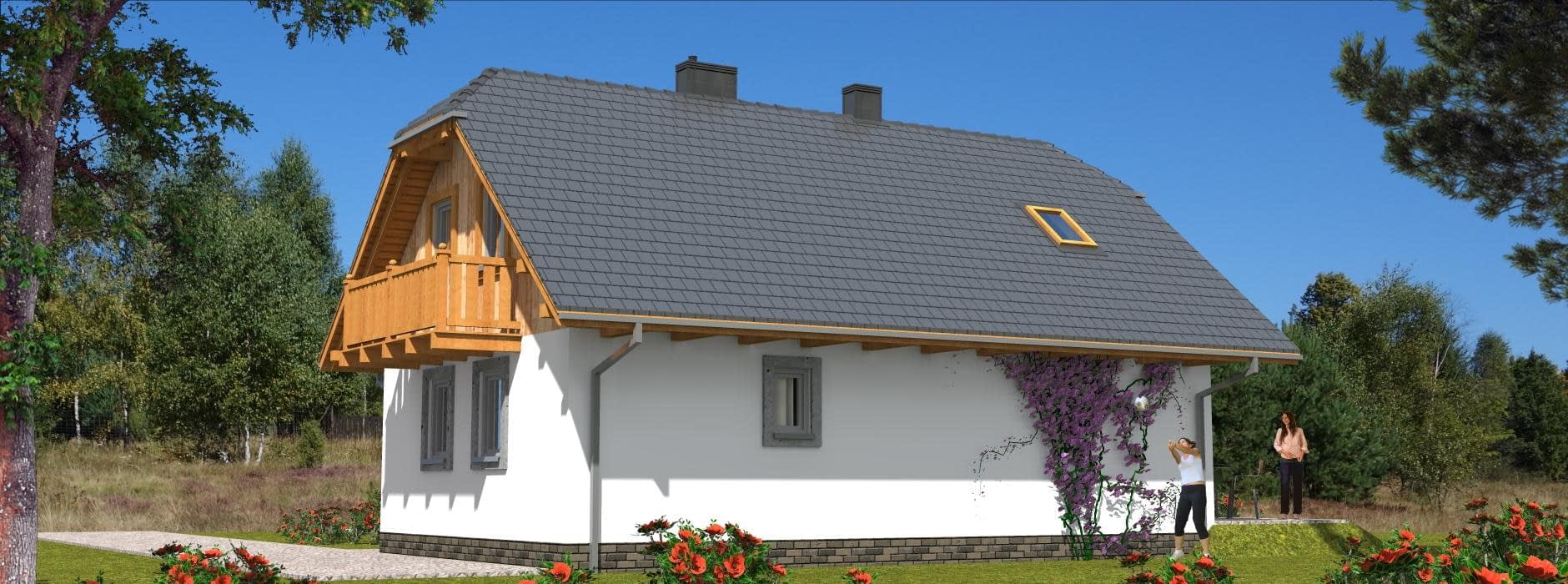 Budynek jednorodzinny, parterowy, z poddaszem mieszkalnym, niepodpiwniczony, 5 pokoi, kuchnia z aneksem jadalnymRzuty