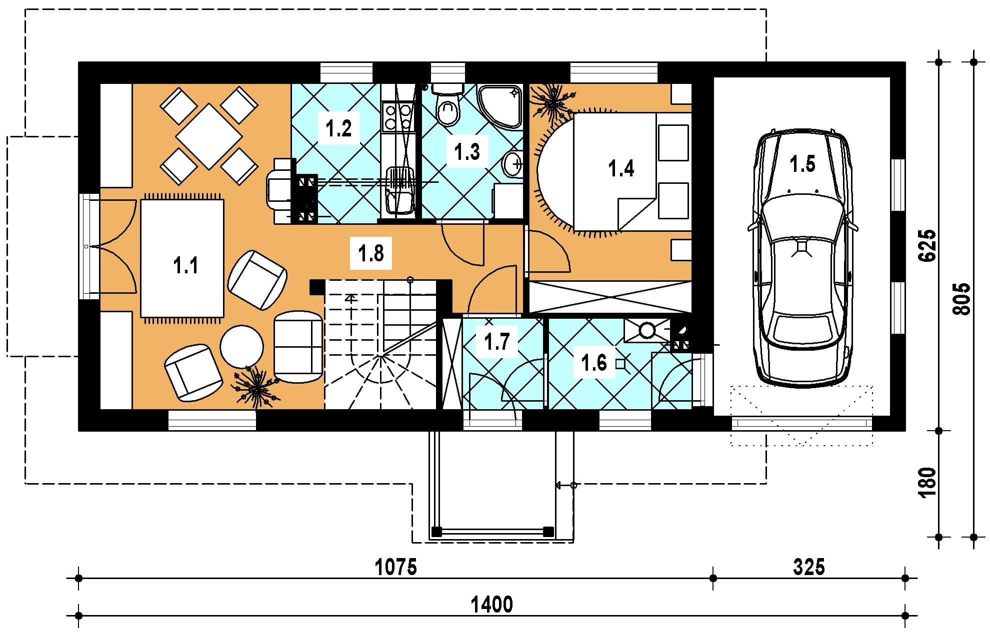 - pokój dzienny 19.40 kuchnia 4.50 łazienka 4.00 sypialnia 10.80 garaż 0.00 kotłownia 3.60 wiatrołap 2.70 komunikacja 6.000