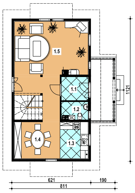 - Minimalne wymiary działki19.5 x 16.5m