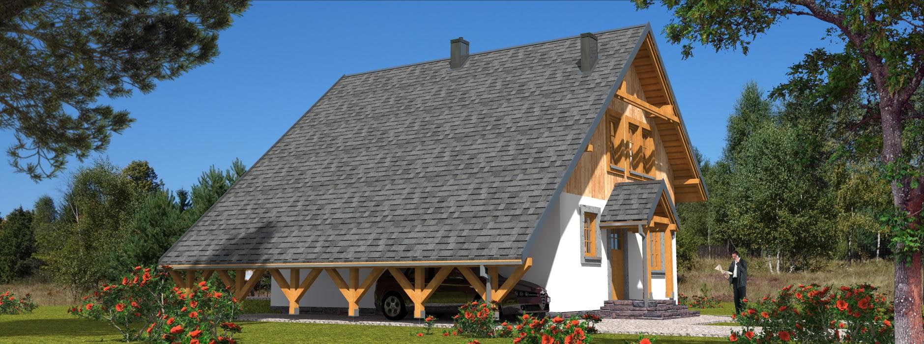 Budynek jednorodzinny, parterowy, z poddaszem mieszkalnym, niepodpiwniczony, 4 pokoje, kuchnia, wiata garażowaRzuty