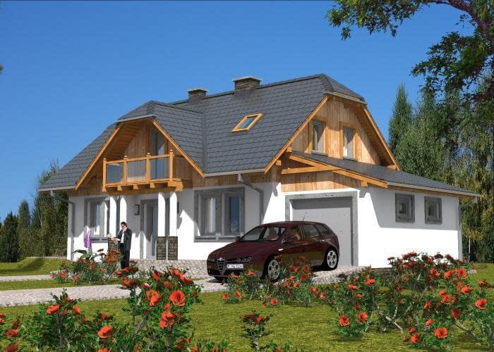Budynek jednorodzinny, parterowy, z poddaszem mieszkalnym, niepodpiwniczony, 5 pokoi, kuchnia z jadalnią, garażRzuty