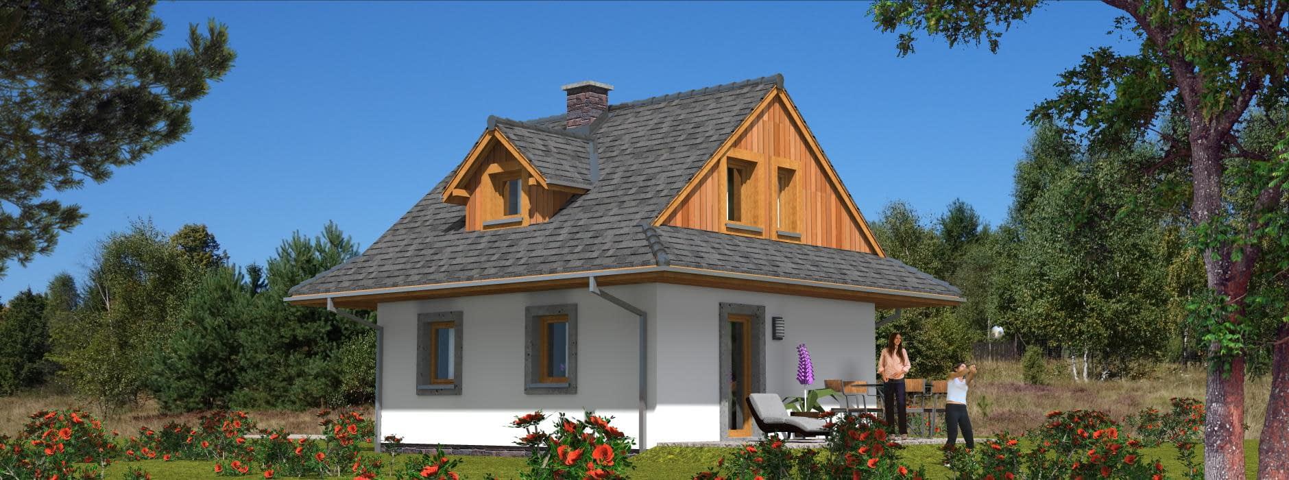 Budynek jednorodzinny, parterowy, z poddaszem mieszkalnym, niepodpiwniczony, 3 pokoje, kuchniaRzuty
