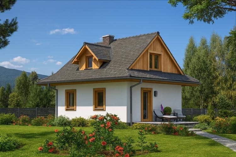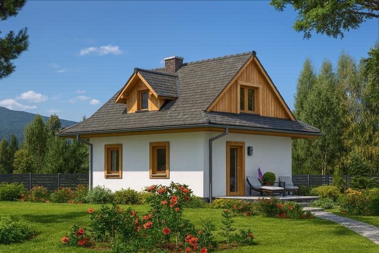 Budynek jednorodzinny, parterowy, z poddaszem mieszkalnym, niepodpiwniczony, 3 pokoje, kuchniaRzuty
